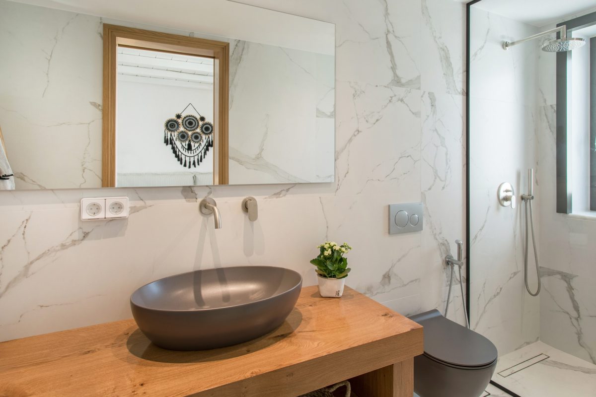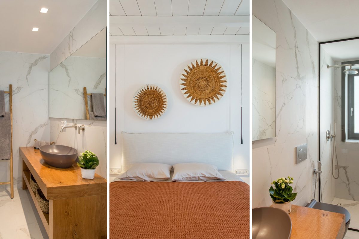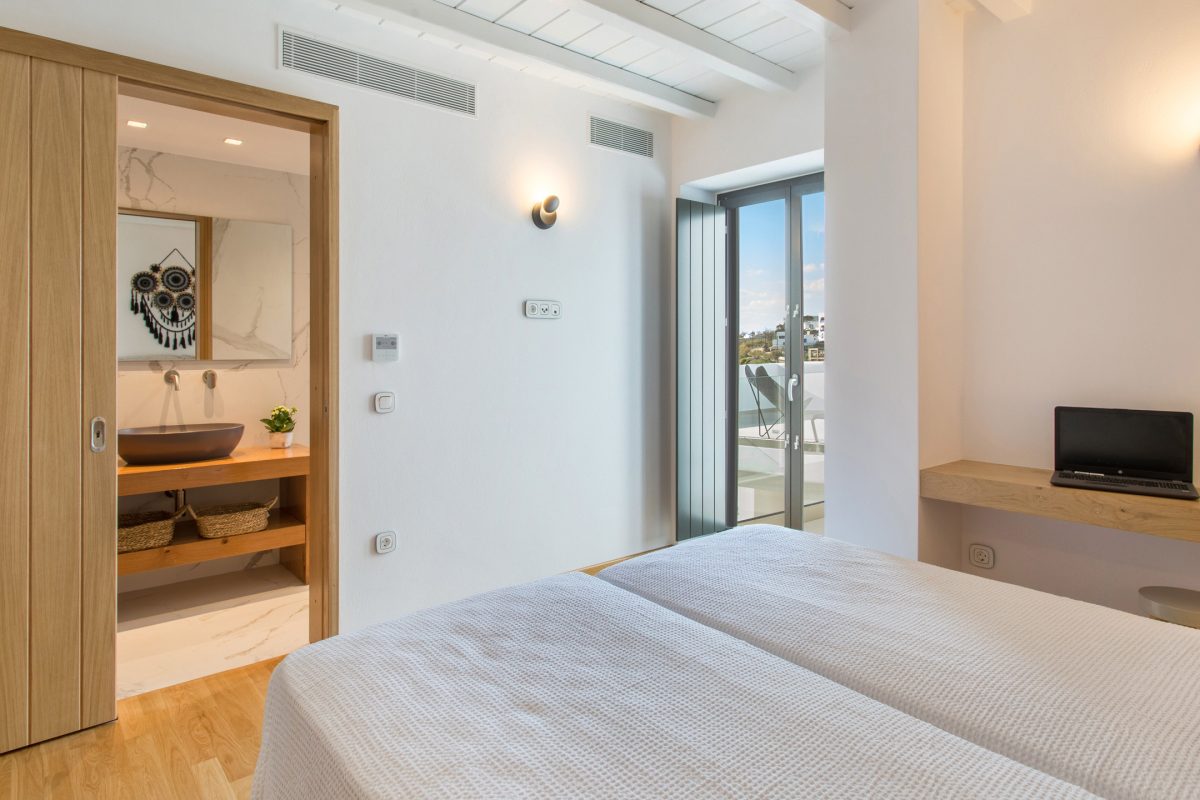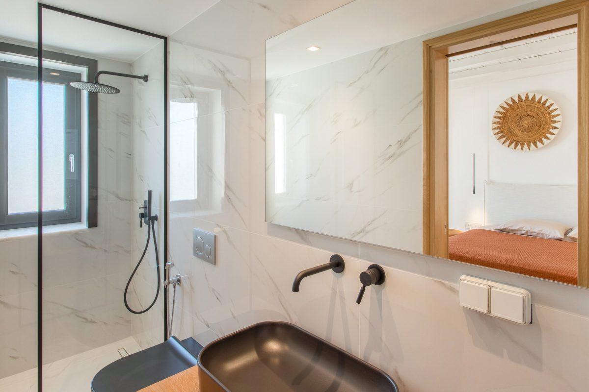1 Master Bedroom with double bed, A/C, en-suite bathroom with shower, direct access to large shared terrace, sea view