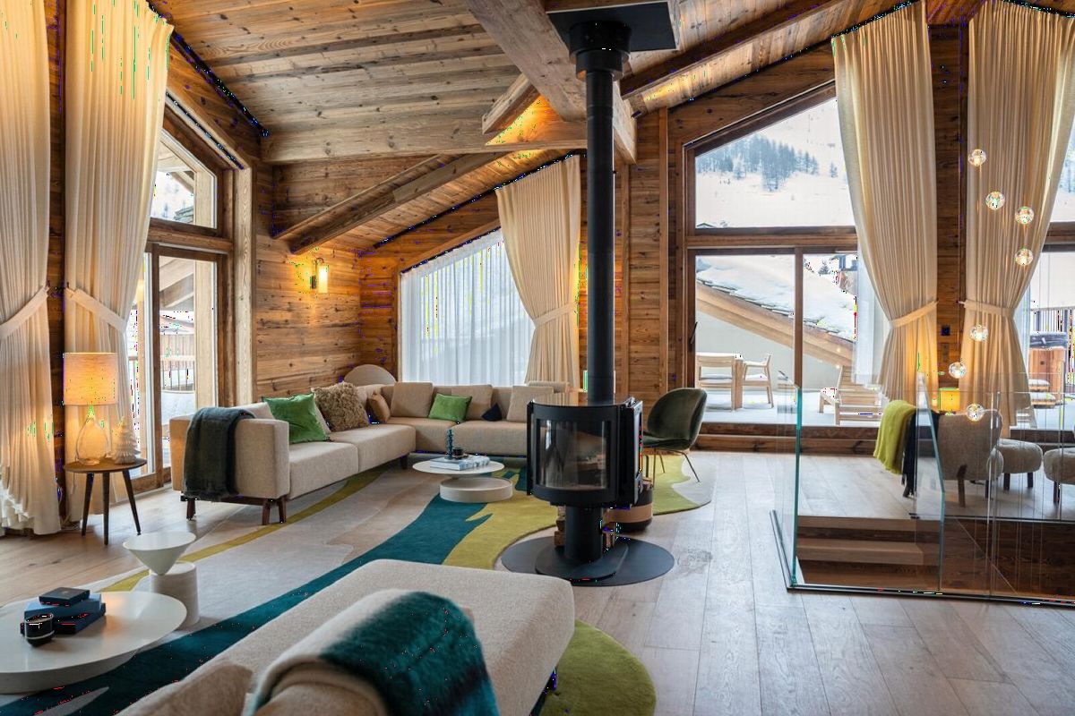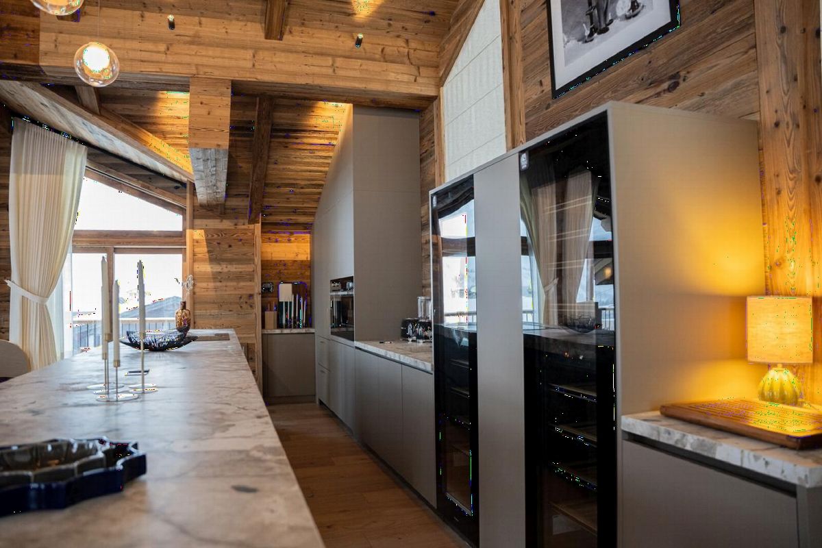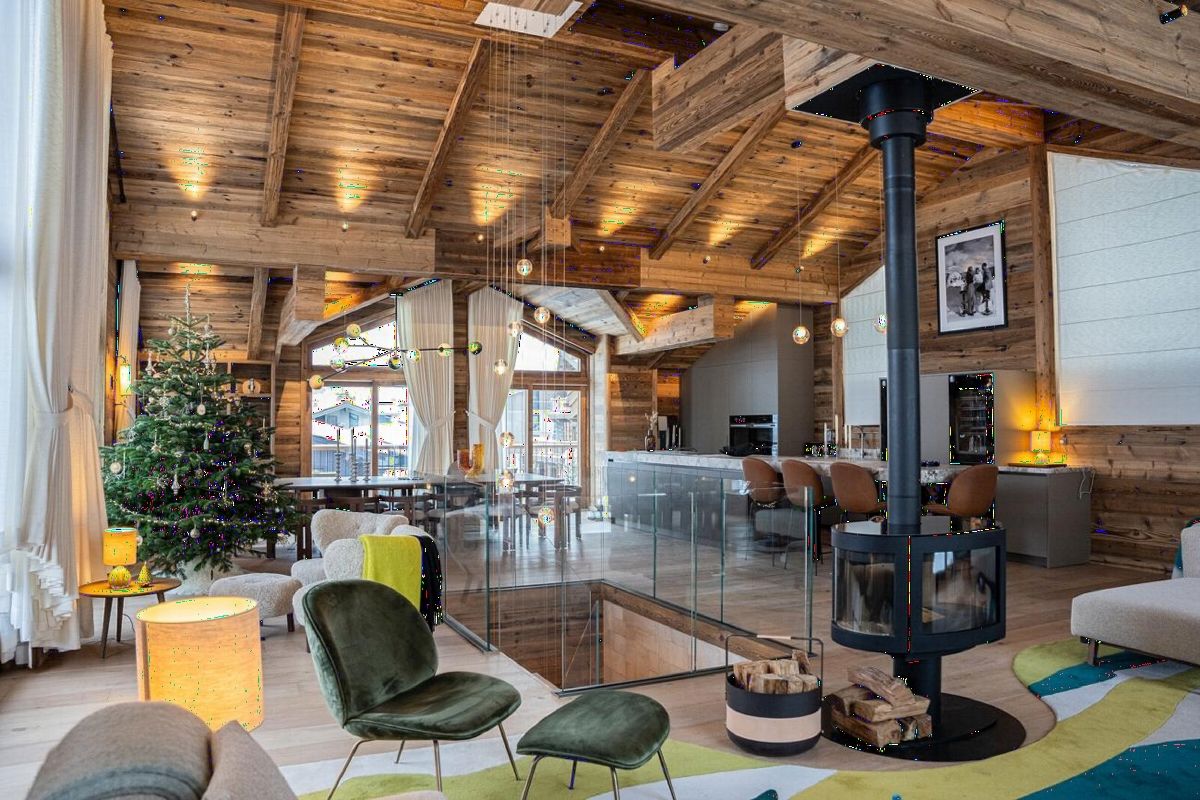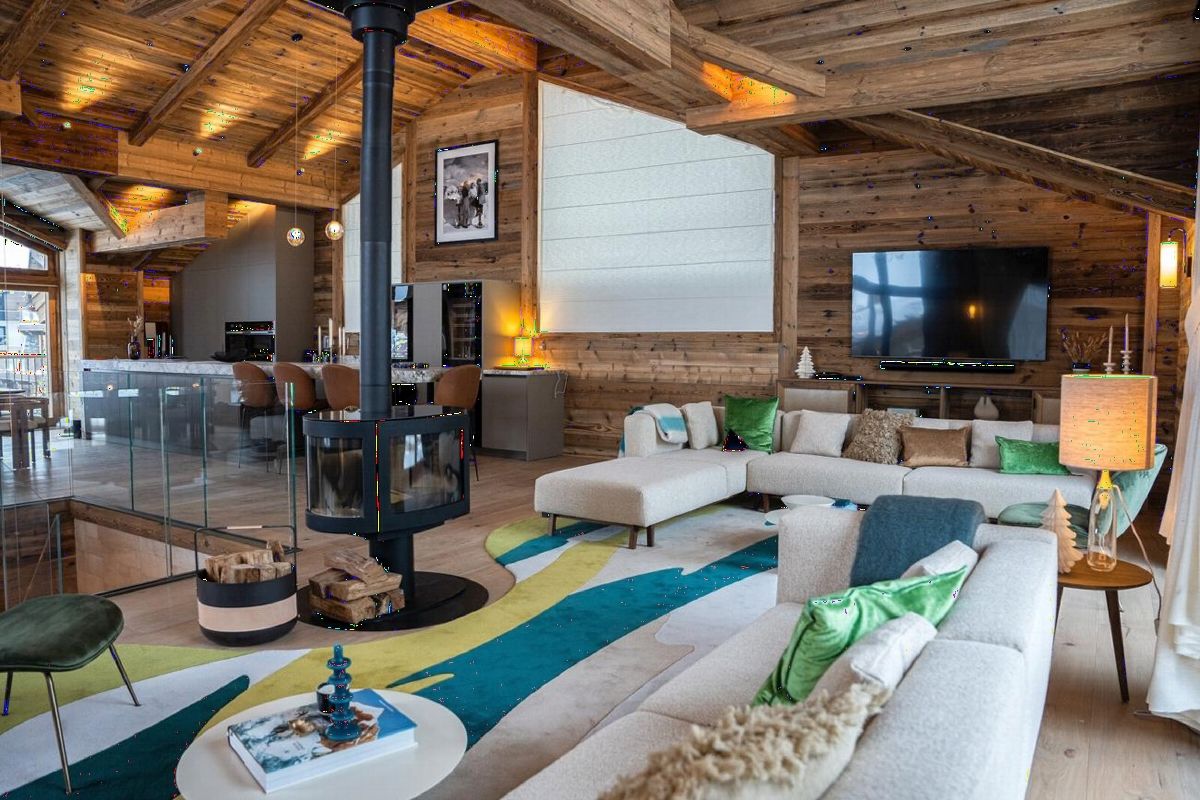 Les espaces de vie internes du Silverstone Lodge 7 sont extrêmement spacieux et joliment meublés. Situé sous les combles de la propriété, le vaste espace de vie bénéficie de hauts plafonds et de grandes baies vitrées, ainsi que d'une cheminée suspendue. Adjacente à l'espace salon, une grande table à manger permet de poursuivre les conversations sur le ski tout en savourant des repas préparés avec amour. La cuisine moderne est entièrement ouverte, créant un excellent espace de divertissement pour votre groupe.