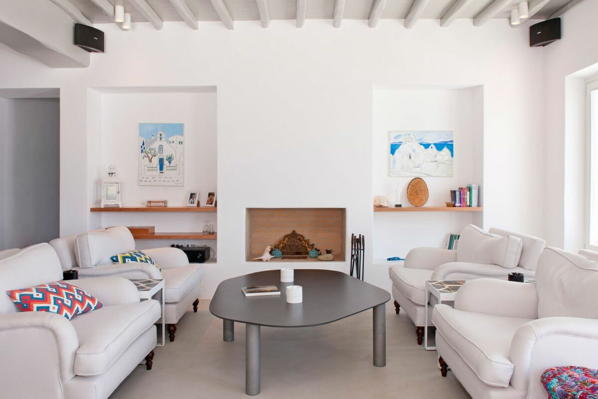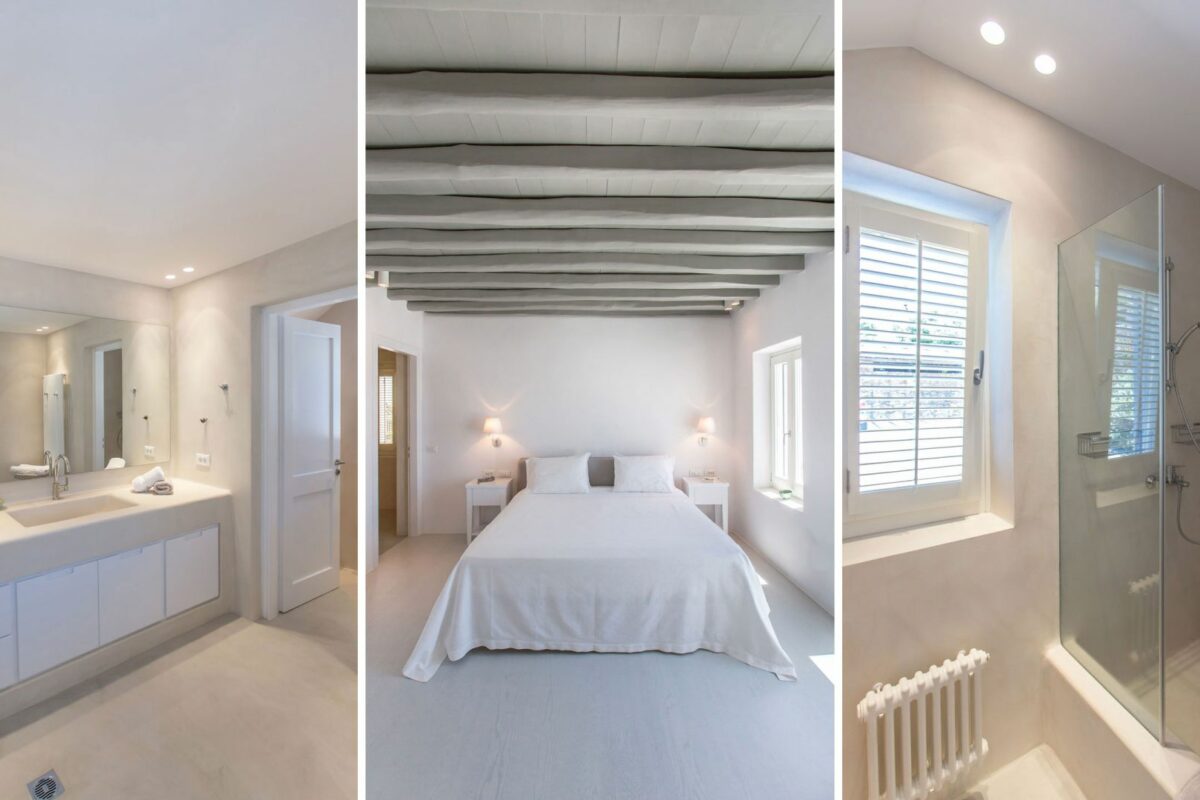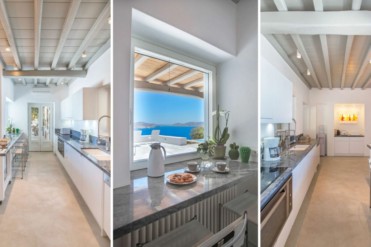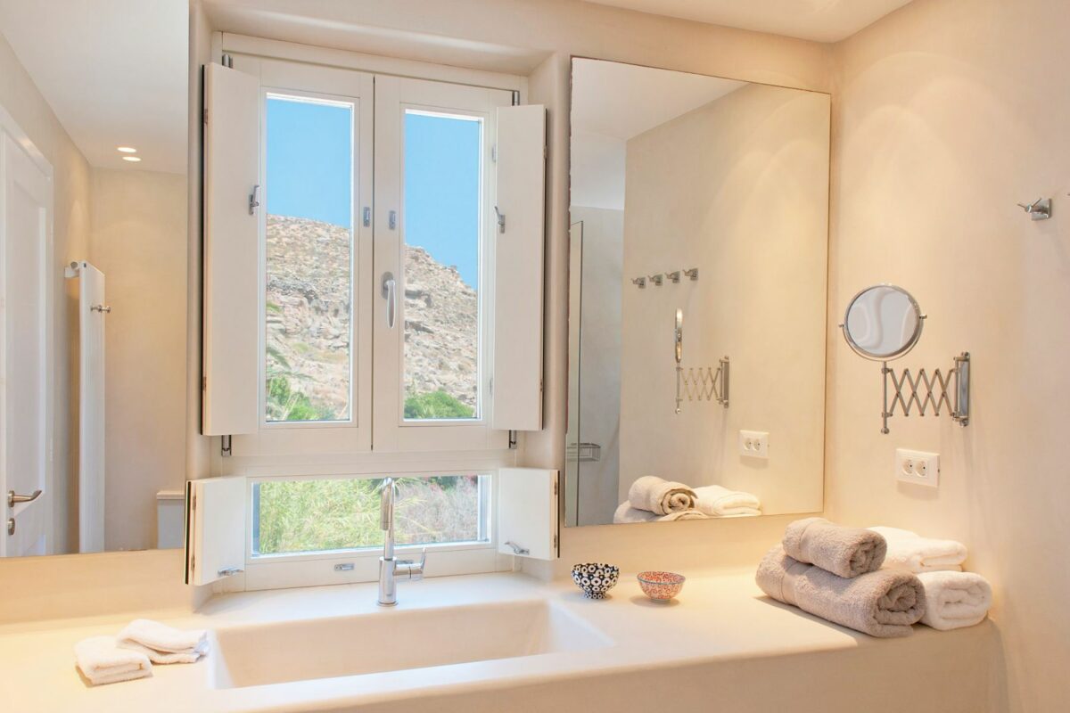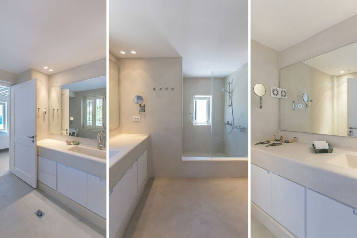 The garden is one of the first things that set Villa 9581 apart. This is one of the greenest villas on Mykonos with trees and bushes surrounding the property - some of them adding a unique touch to the extensive pool-side pergola. Your overflow pool looks out towards the panorama and is a refreshing interlude in lazy days at the villa. Satisfy your appetite in the al-fresco dining area, fitted with a BBQ grill and outdoor fridge for your vintage Rosé. The perfect spot to jump-start your day or tone it down before a big night out.