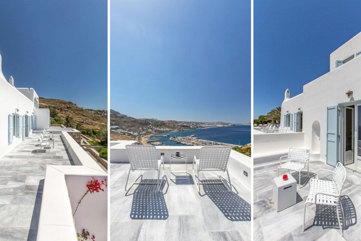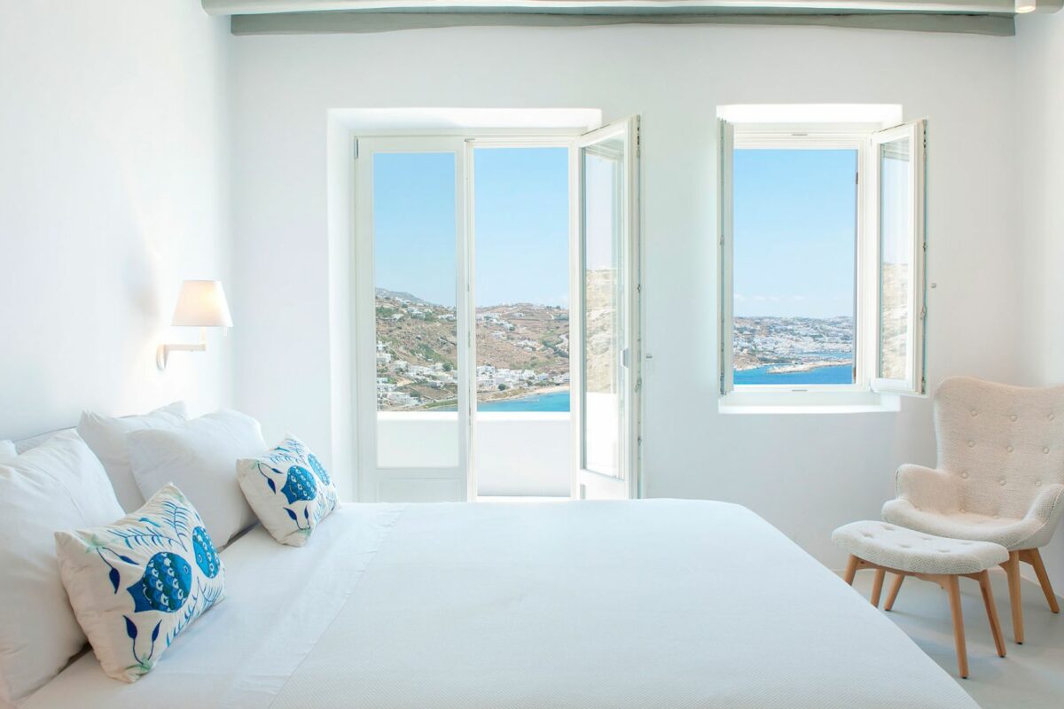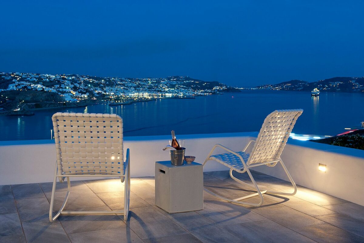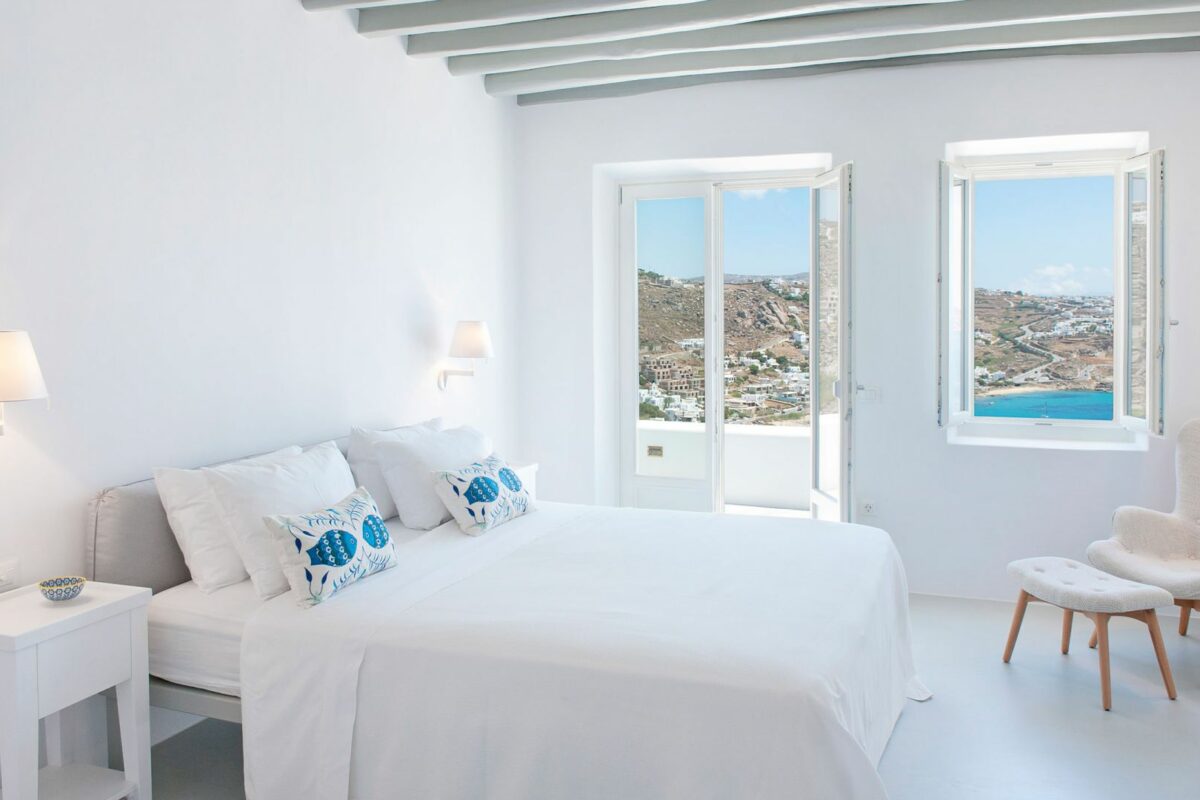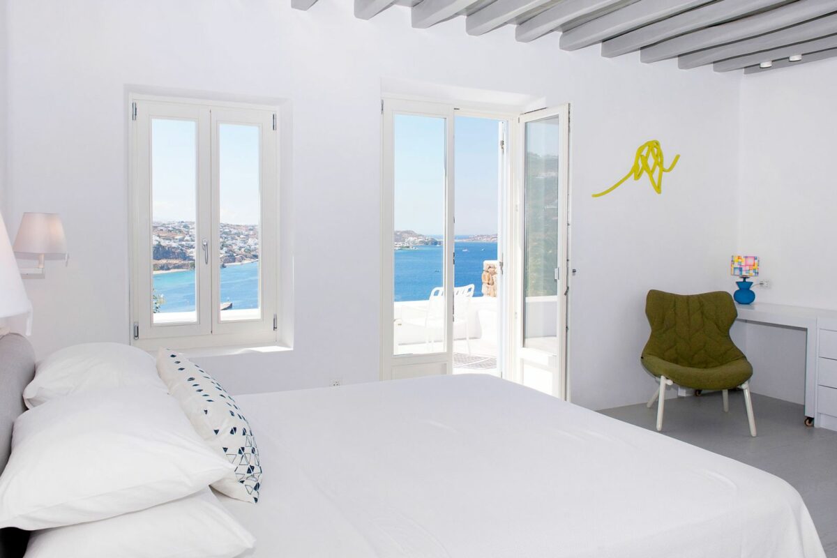 The elevated location widens the view over Mykonos' marina and Mykonos Town's bay, with yachts and ships cruising out towards neighbouring islands and colorful sunsets. This strategic position is perfect for island first-timers or veterans, it feels secluded but on paper it is the opposite, you're literally plugged into the island's metaphorical mainframe. The easy access to the marina will also come in handy if you have sailed to Mykonos or plan on chartering a day out at sea during your stay.