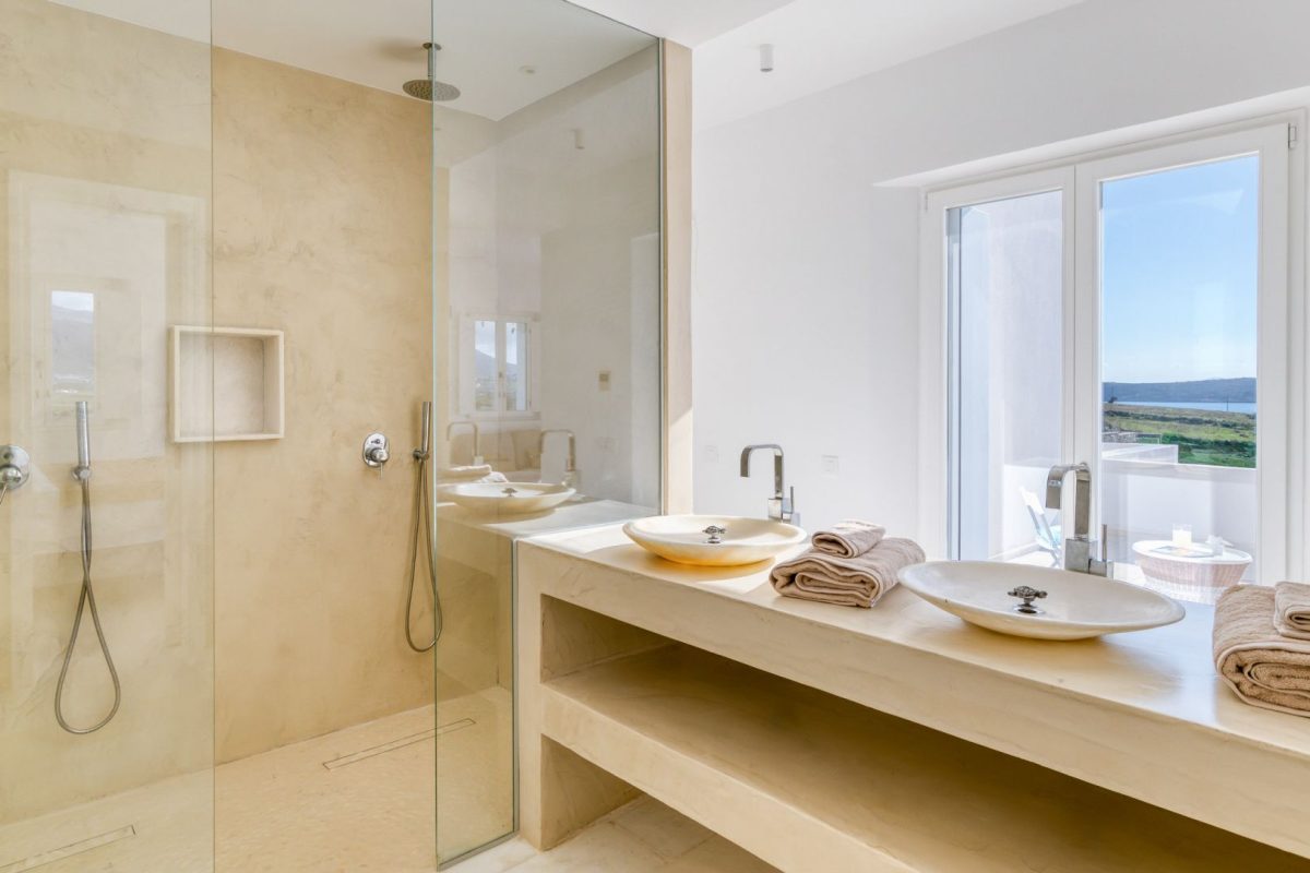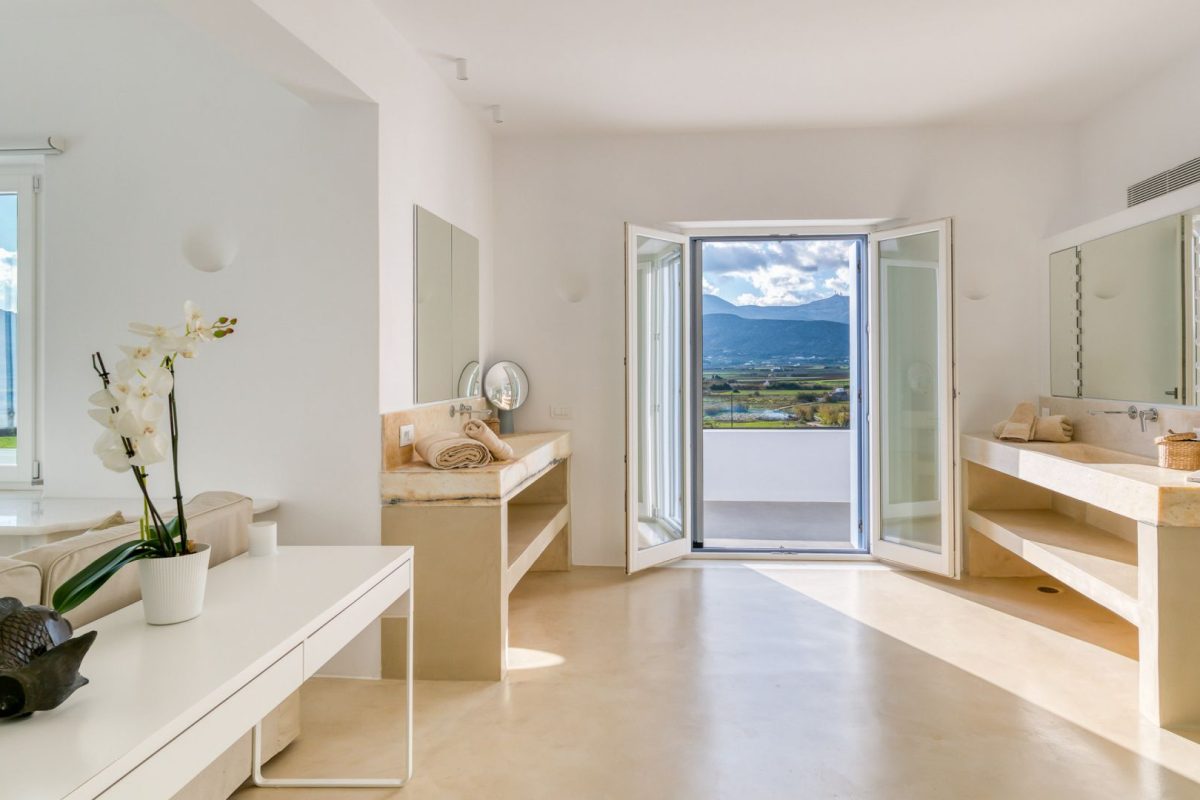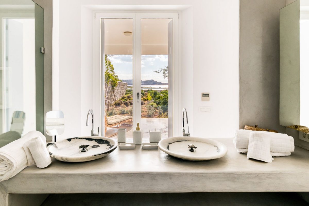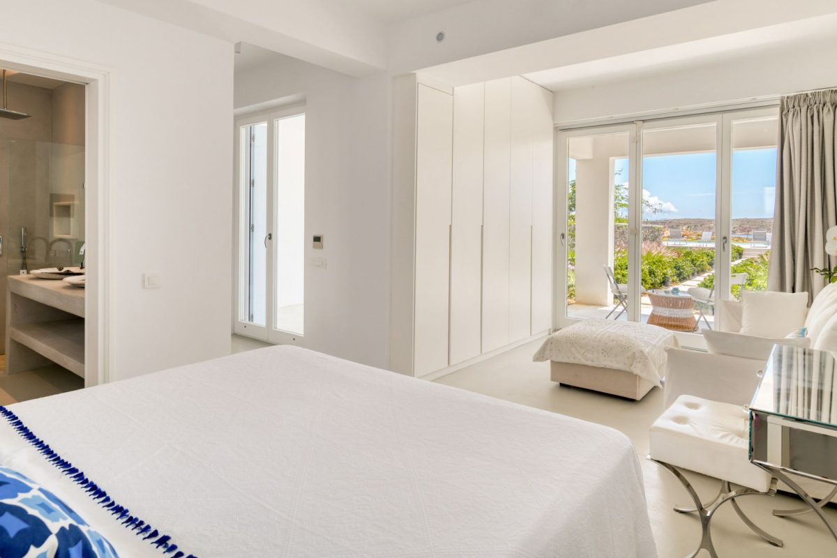 The first villa consists of eight bedrooms, all with en suite bathrooms and are conveniently split across two levels. The prestigious 120sqm master suite is located on the upper level and enjoys a private balcony in order for guests to take advantage of the views. A guest room is also located on the upper level, enjoying it’s own independent outdoor access and private balcony. Also located on the upper level is a spacious living area, dining area and kitchen. The remaining six guest bedrooms are located on the ground level. A second fully equipped kitchen is also located on the ground level and has direct outdoor access for poolside entertaining.