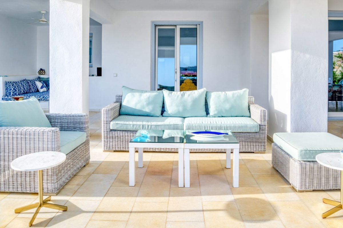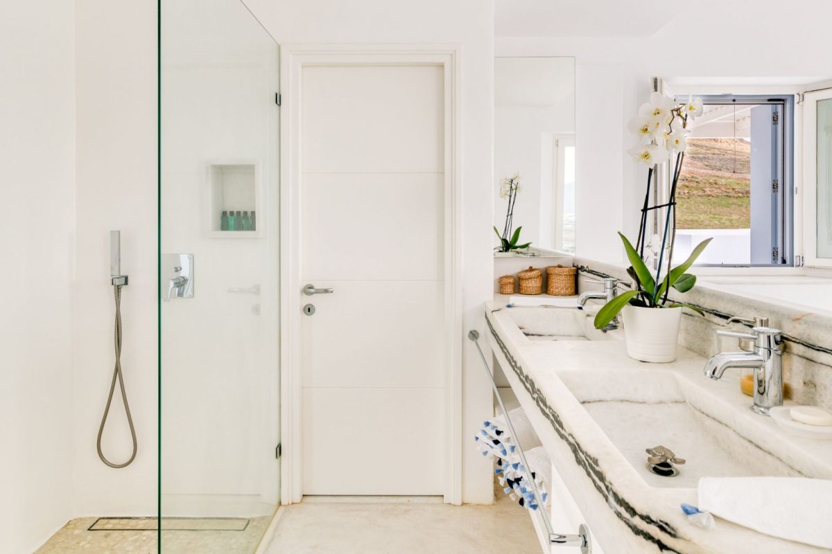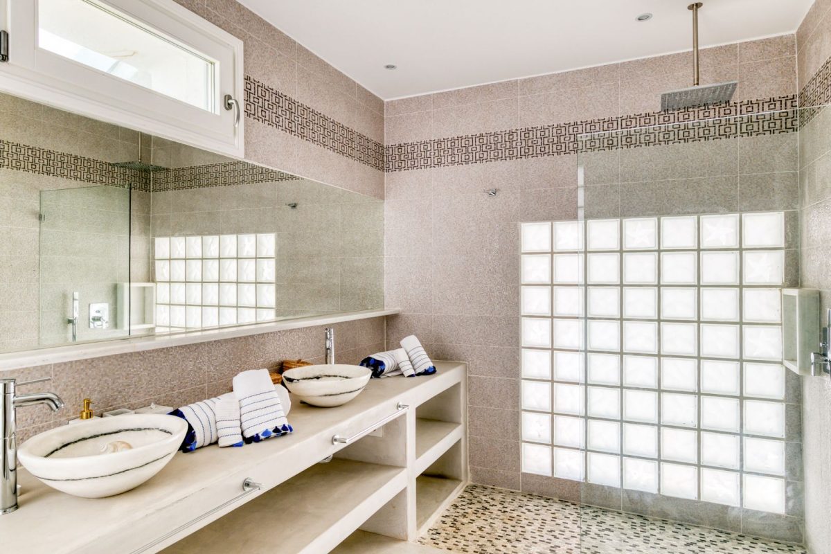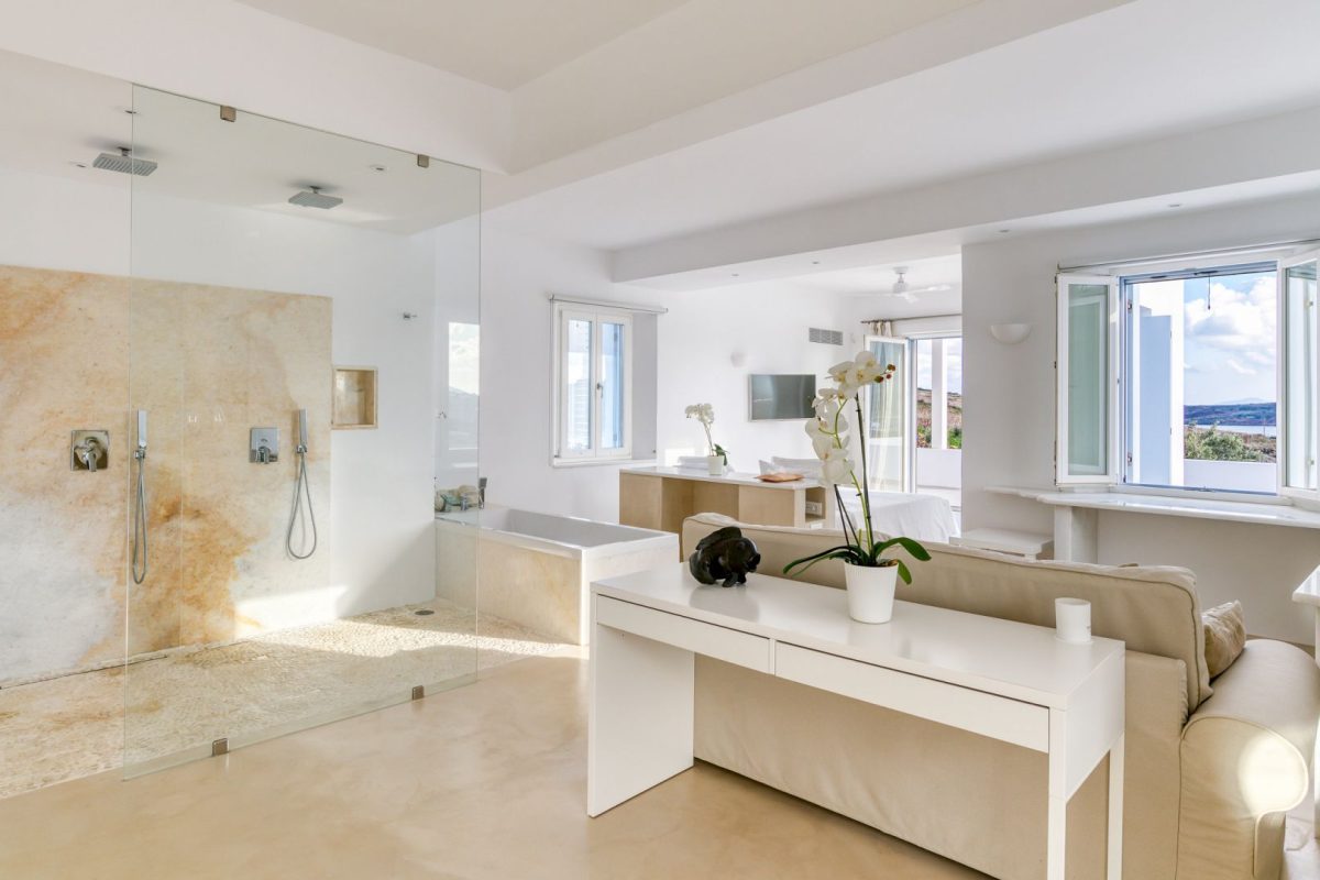 The first villa consists of eight bedrooms, all with en suite bathrooms and are conveniently split across two levels. The prestigious 120sqm master suite is located on the upper level and enjoys a private balcony in order for guests to take advantage of the views. A guest room is also located on the upper level, enjoying it’s own independent outdoor access and private balcony. Also located on the upper level is a spacious living area, dining area and kitchen. The remaining six guest bedrooms are located on the ground level. A second fully equipped kitchen is also located on the ground level and has direct outdoor access for poolside entertaining.