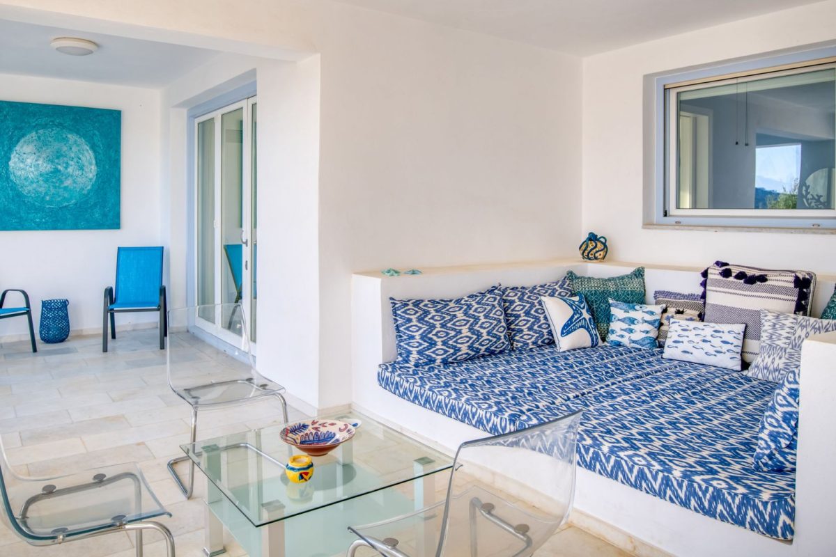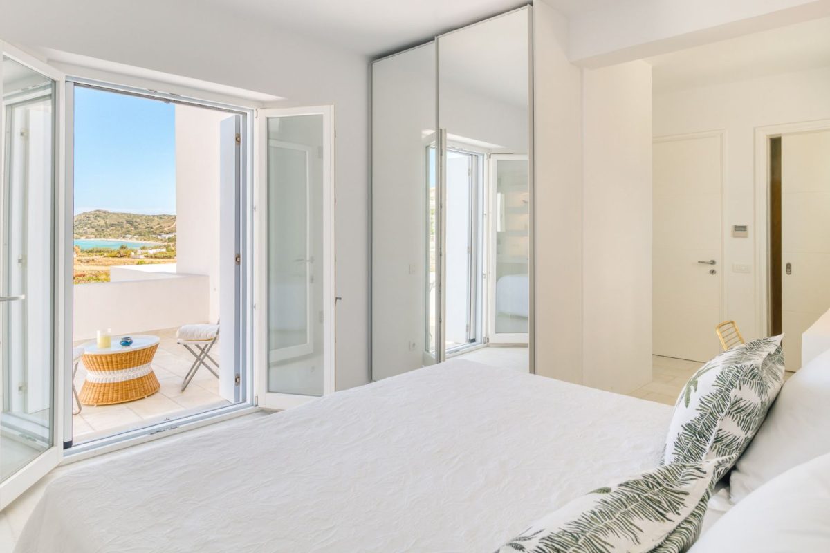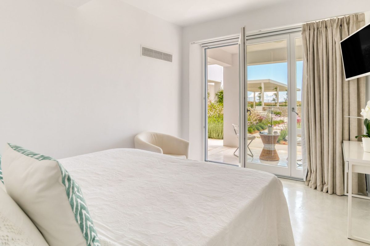 1 Master Bedroom with double bed, A/C, en-suite bathroom with double shower, small living room, direct access to private balcony with sea view