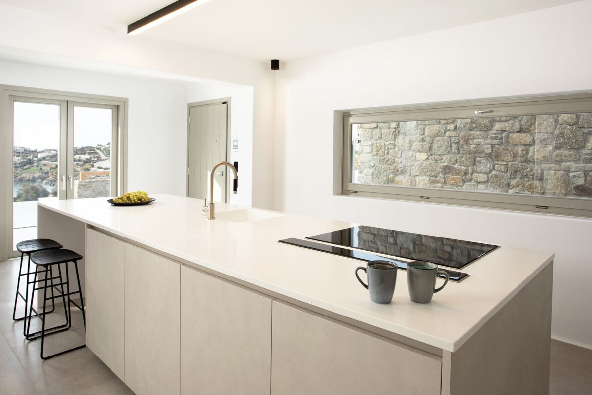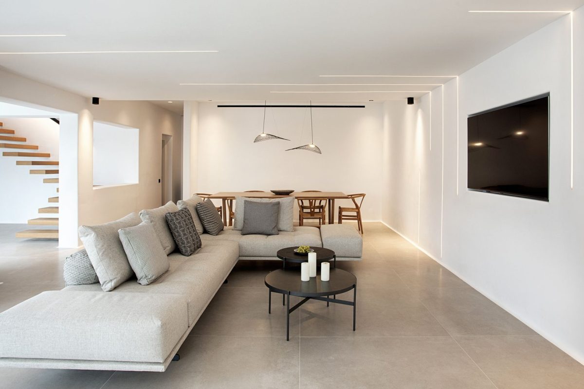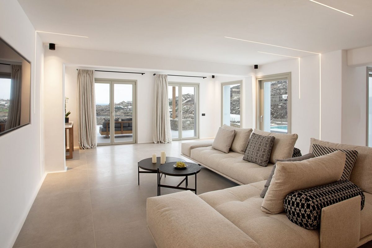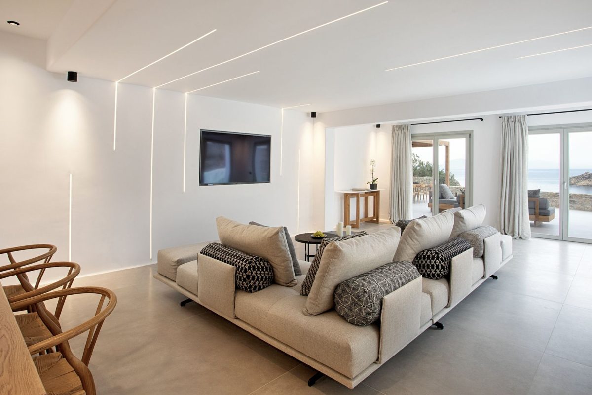 The interiors of Villa Venus are of contemporary and minimalist inspiration. All the spaces consistently follow the same design concept with a modern and carefully detailed approach. We appreciate the unique lighting and the comfort of the bedrooms, all of which are similar and some of them enhanced by the beautiful sea view.