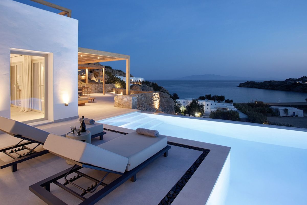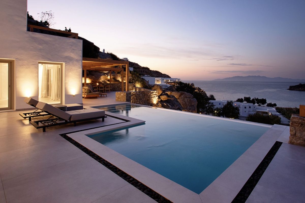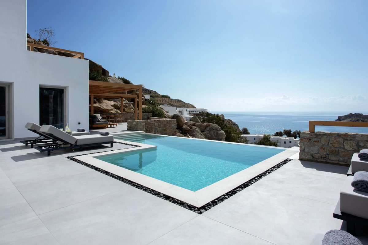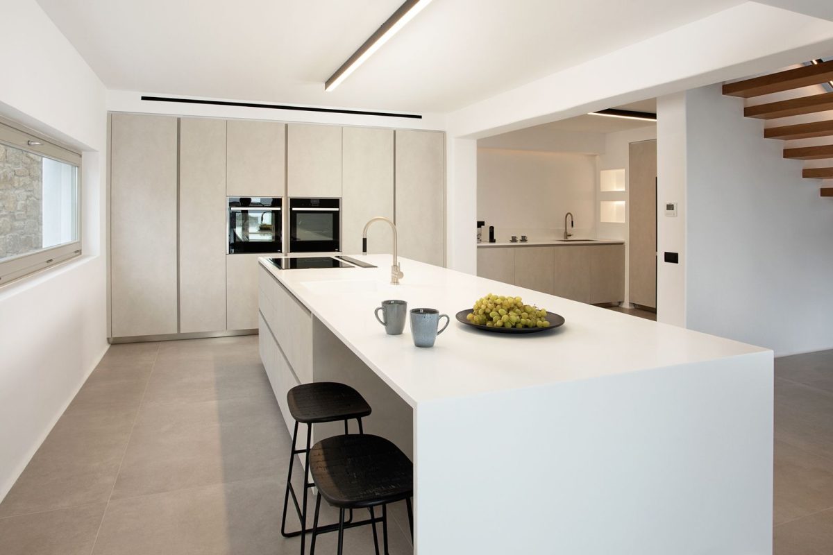 The interiors of Villa Venus are of contemporary and minimalist inspiration. All the spaces consistently follow the same design concept with a modern and carefully detailed approach. We appreciate the unique lighting and the comfort of the bedrooms, all of which are similar and some of them enhanced by the beautiful sea view.