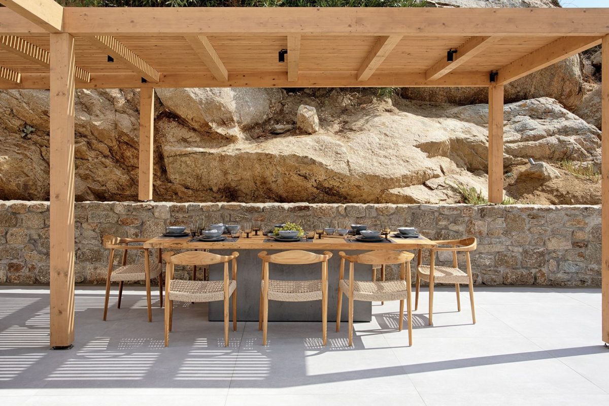 - Shaded pergola with outdoor dining area