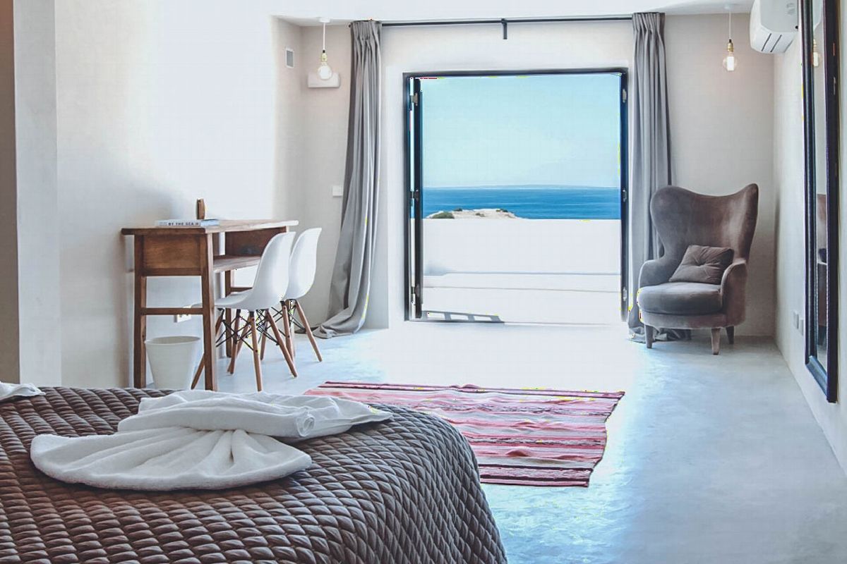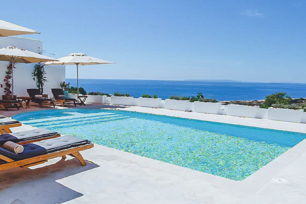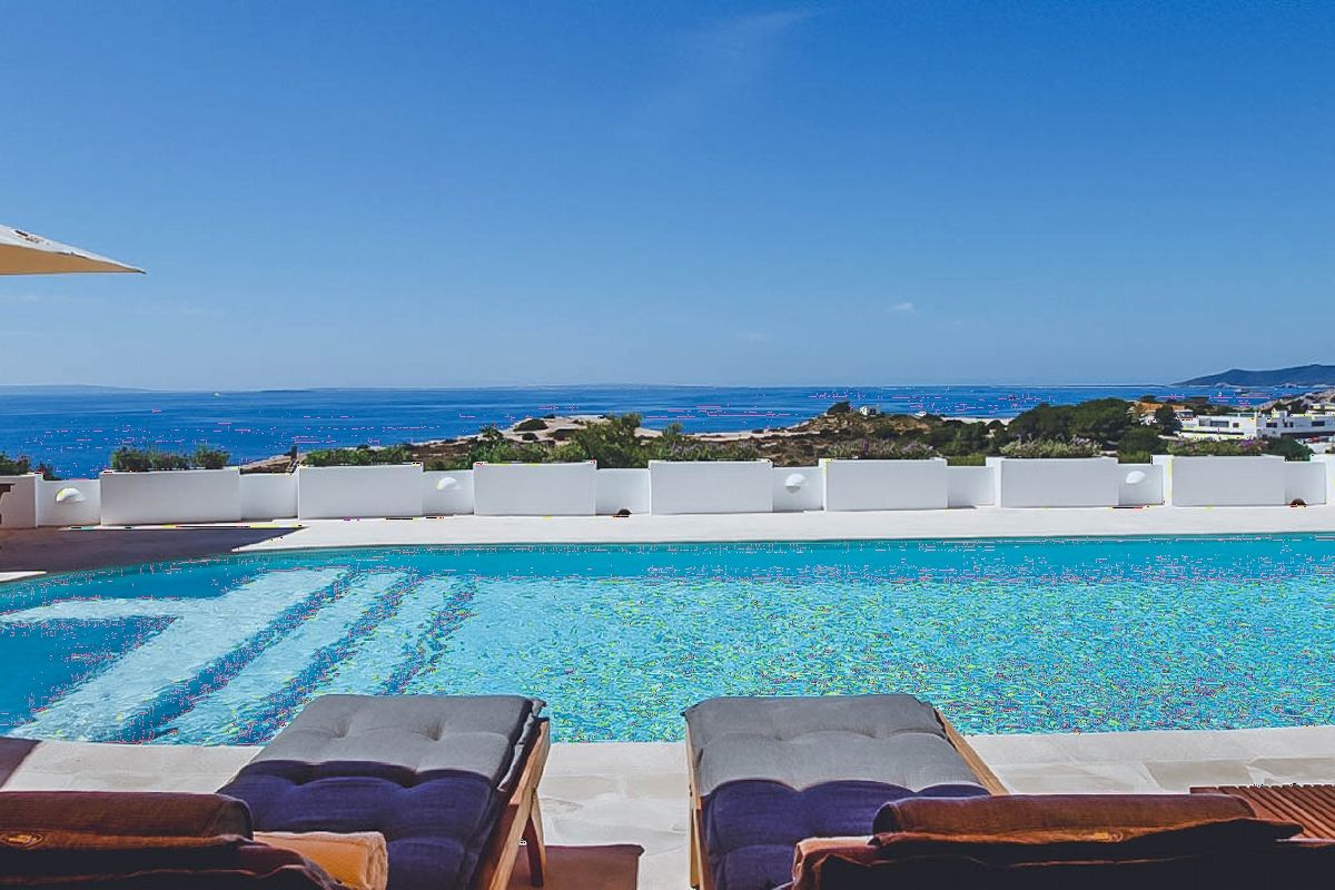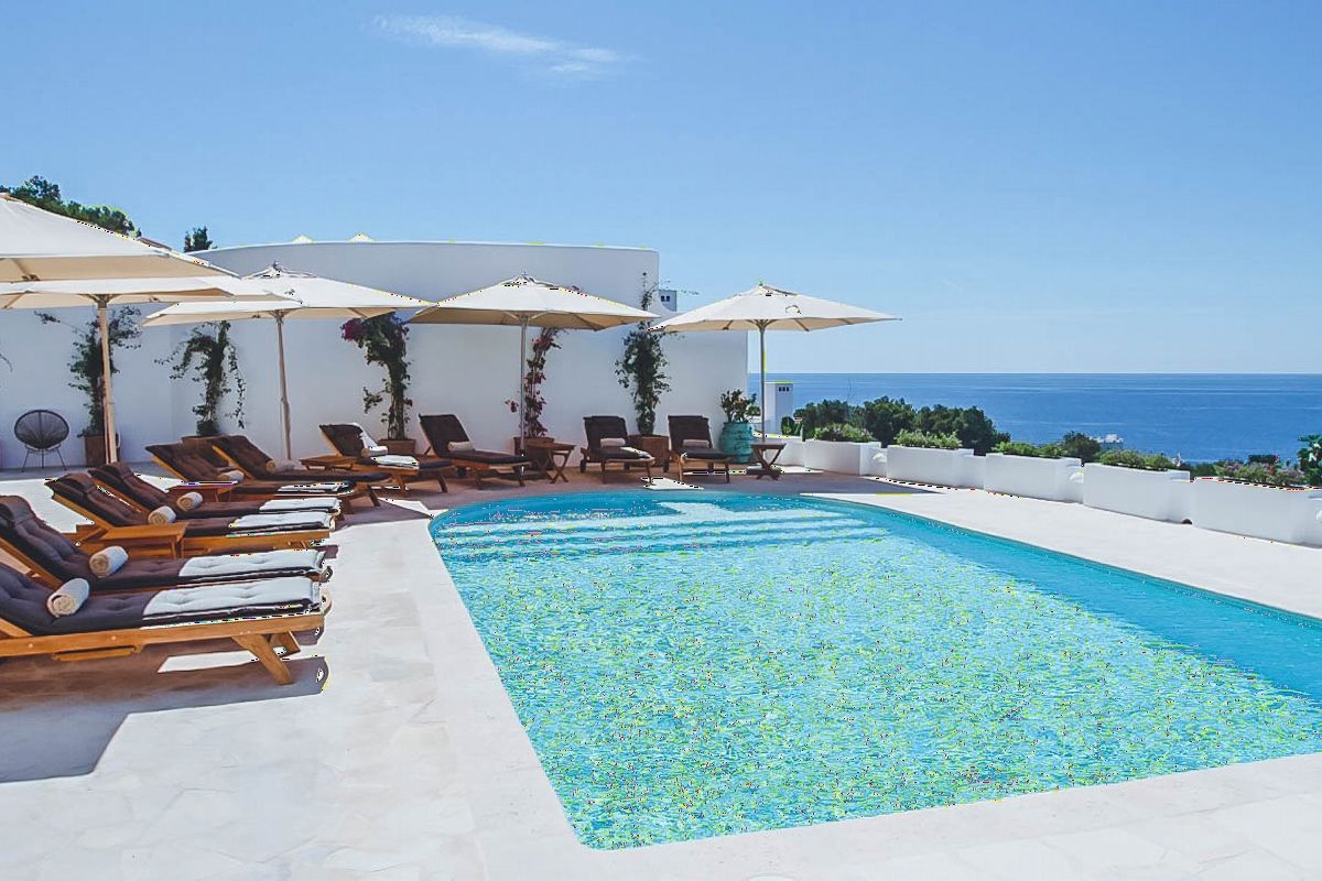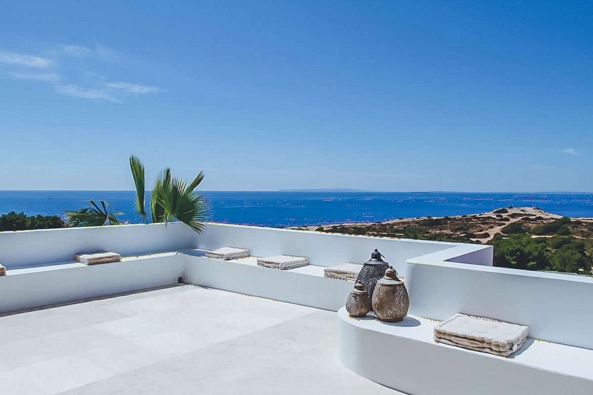 Guests can savor breathtaking panoramas of the deep blue Mediterranean Sea, the charming silhouette of Dalt Vila (Ibiza's iconic old town), and the rugged hills of nearby Formentera Island.