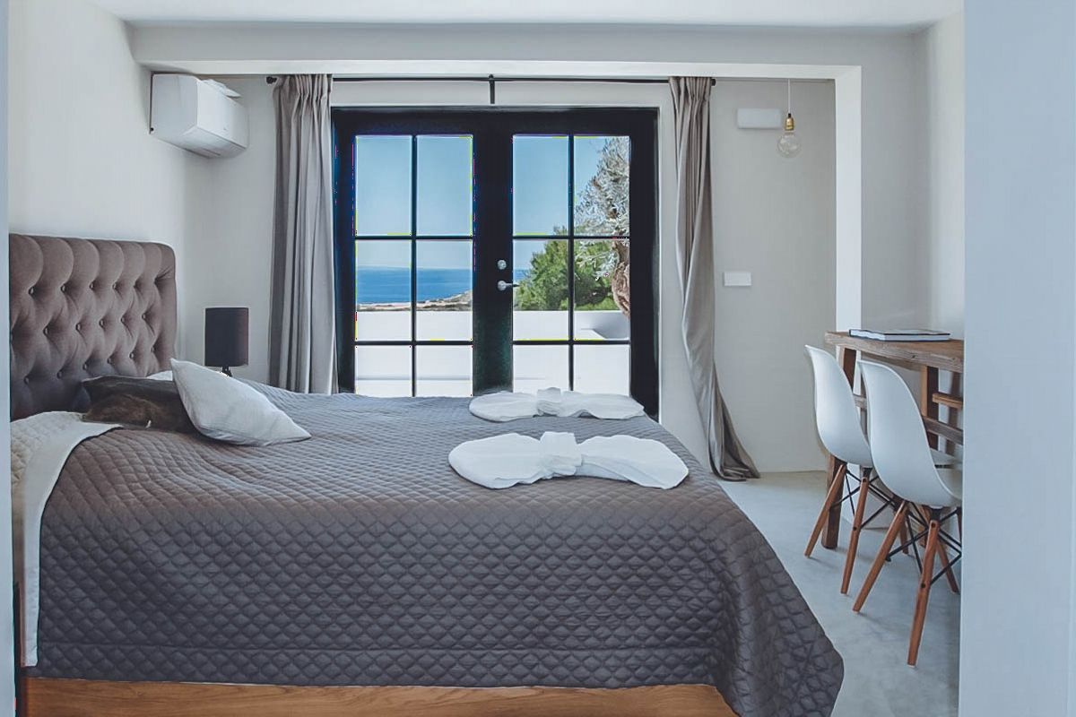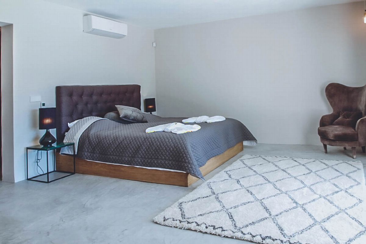 The villa’s six spacious bedrooms all maintain the same chic aesthetic, with white-walled rooms and polished floors that create a calm and airy ambiance. Each bedroom is en-suite and furnished with a king-size bed, ensuring a comfortable and restful stay. The master suite is particularly luxurious, offering private access to a sun terrace equipped with loungers, where you can enjoy sweeping views of the sea. One of the unique features of Villa Allison is the bedroom distribution whereas only one bedroom offers internal access from the living areas on the ground floor while all of the remain 5 bedrooms offers external entrance to add to the privacy needed when traveling with groups of friends.