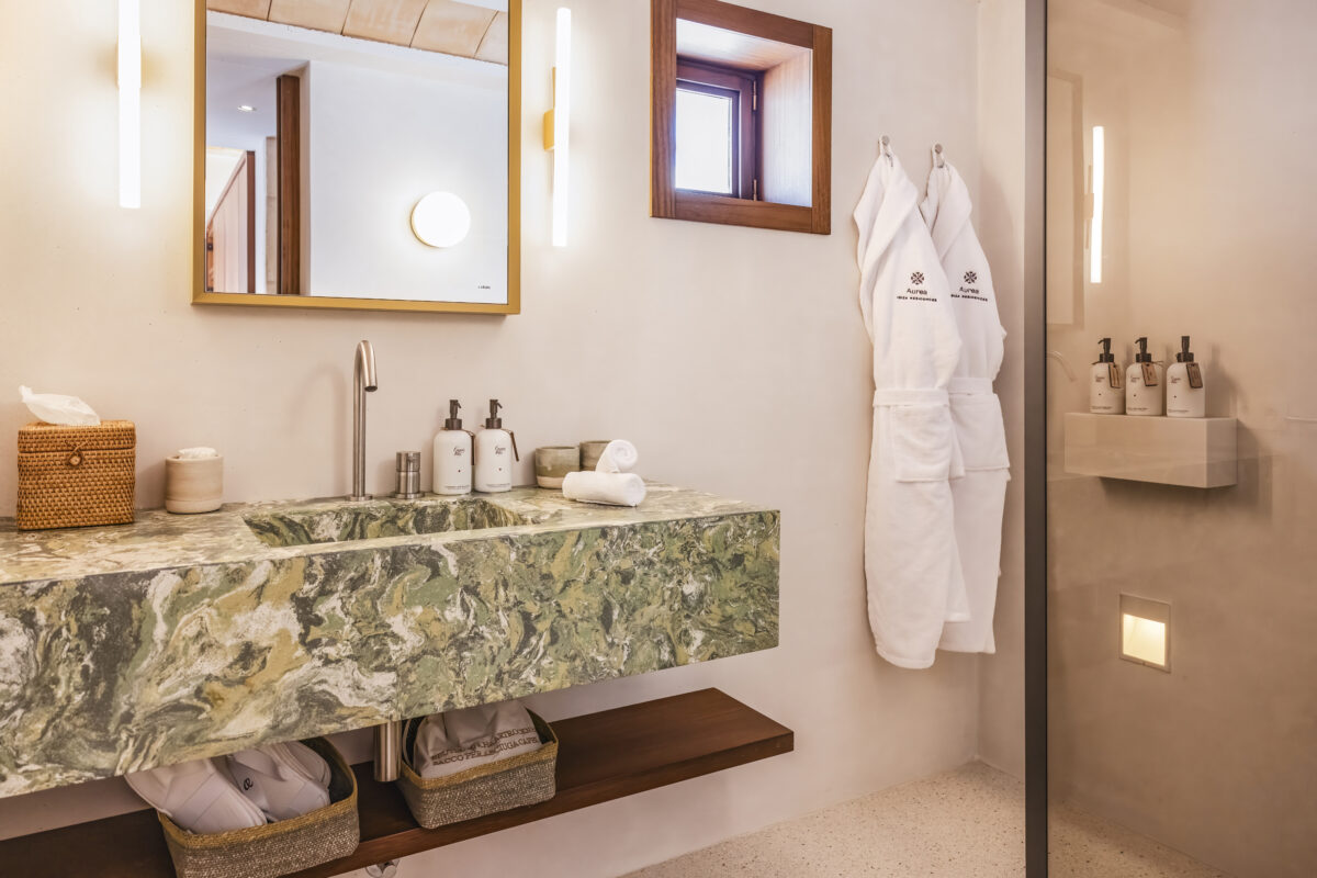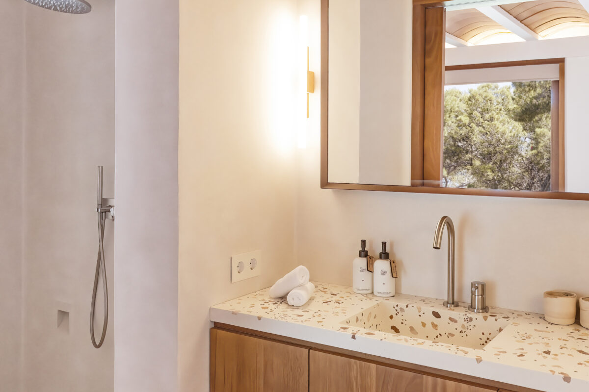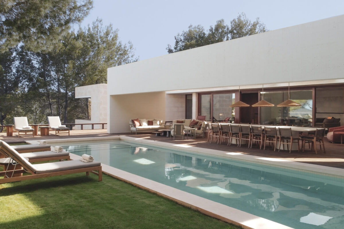 Située dans la partie nord de l'île, à 10 minutes du village de Santa Eularia des Riù, la villa Aurea est nichée au cœur de jardins de pins, dans un environnement où règne la nature. Entre les plages d'Aigües Blanques et de Sant Vicente, la maison est l'endroit idéal pour passer des vacances paisibles, loin de l'agitation d'Ibiza, avec une vue imprenable sur l'île de Tagomago. Avec ses six chambres, la villa peut accueillir jusqu'à 12 personnes.