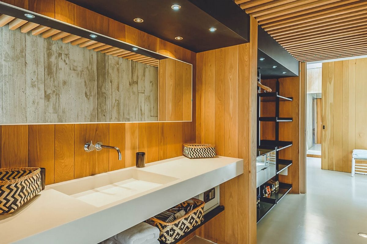 Adjacent to the long swimming pool and sunbathing deck is a shaded area with low level seating, choose to lounge alone or with your group. A large al fresco dining area complete with outdoor kitchen is perfectly set up for lunches that roll into cocktail hour and beyond as you watch the sky change colour and descend into night time.