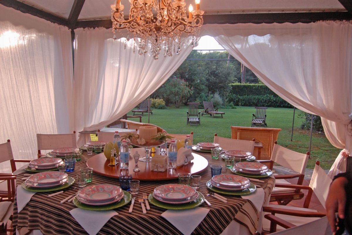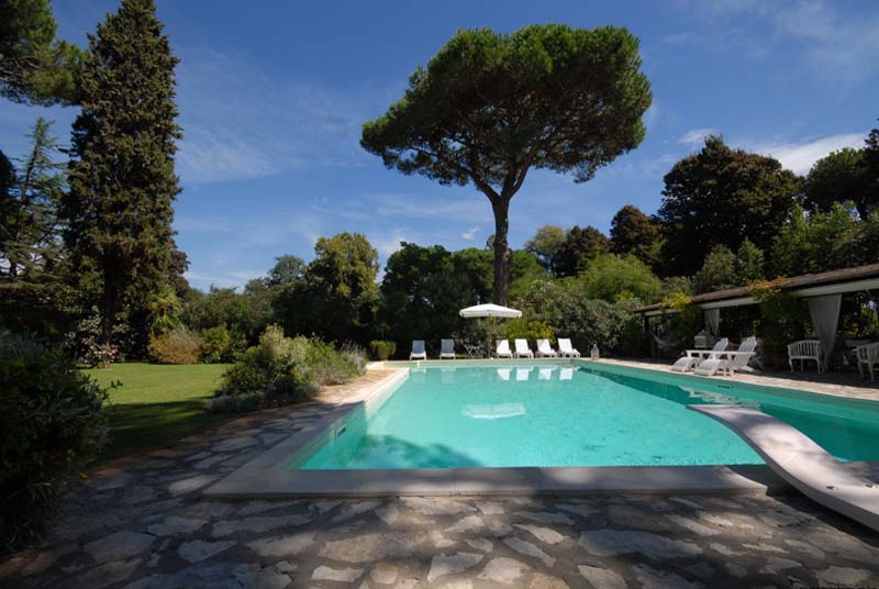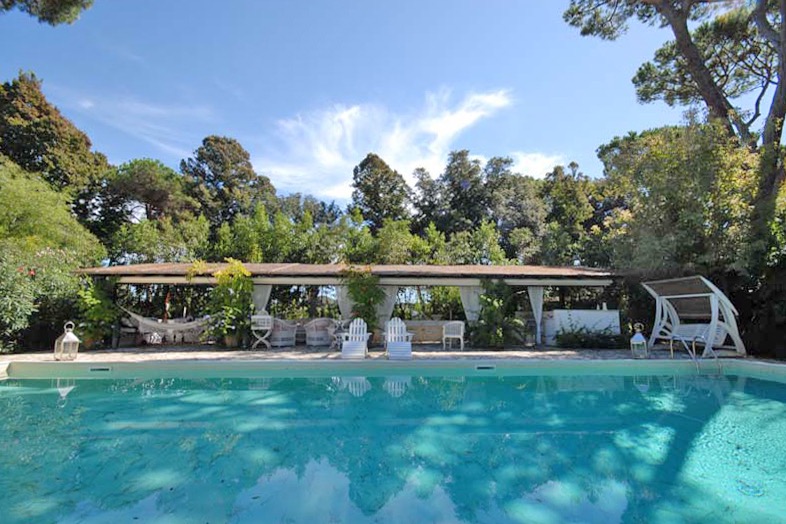This villa is forty years old and it has been tastefully renovated recently and developed an eclectic, English atmosphere, set with antiques, books and paintings. The villa has an airy, artistic accent, the interior is decorated in colourful and comfortable style. It enjoys five bedrooms, with beamed ceilings and floors in both parquet and ceramics. Their windows open to the property’s wide gardens that feature a gazebo with electrical capabilities and with a crystal chandelier, stereo, fridge and white linen curtains, perfect for dinners alfresco and romantic breakfasts. The pool house which is completely independent from the main villa is perfect for large dining groups and happy times. These gardens have been landscaped with close care and include several local herbs, plants, and flowers. Furthermore, the villa has a large private swimming pool.