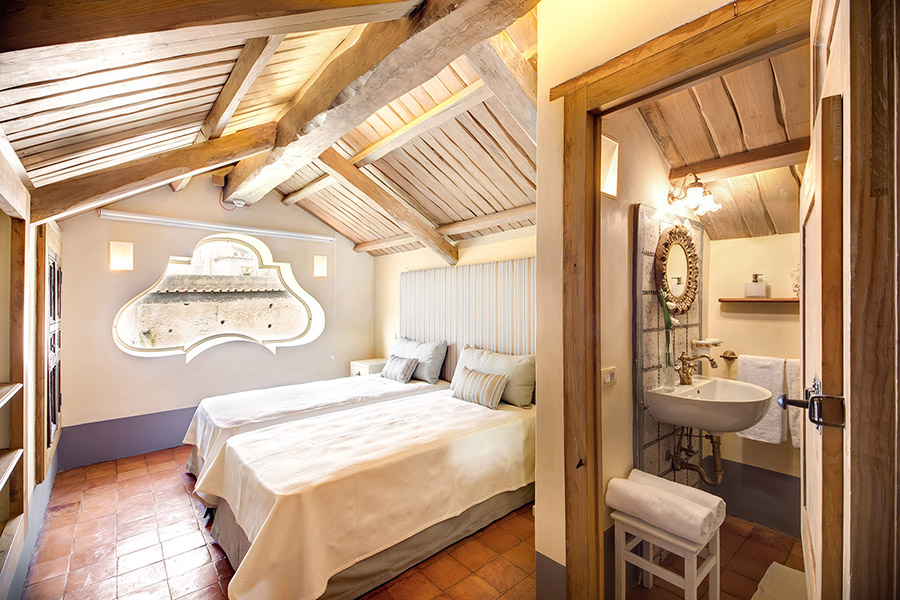 Chambre 3 : grand lit avec salle de bain privée, belvédère