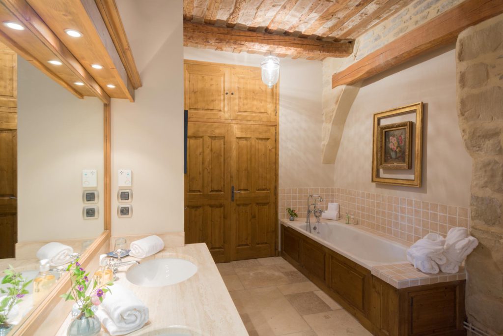 The villa is situated outside of the small village, at the end of a pathway. It is protected from curious eyes by a wall on one side and the open wilderness of Provence on the other. You will be enchanted by the beauty of this unique property, as you wander in the garden, enjoy the inner flowered courtyard, and relax by the pool sipping local wine with your guests.