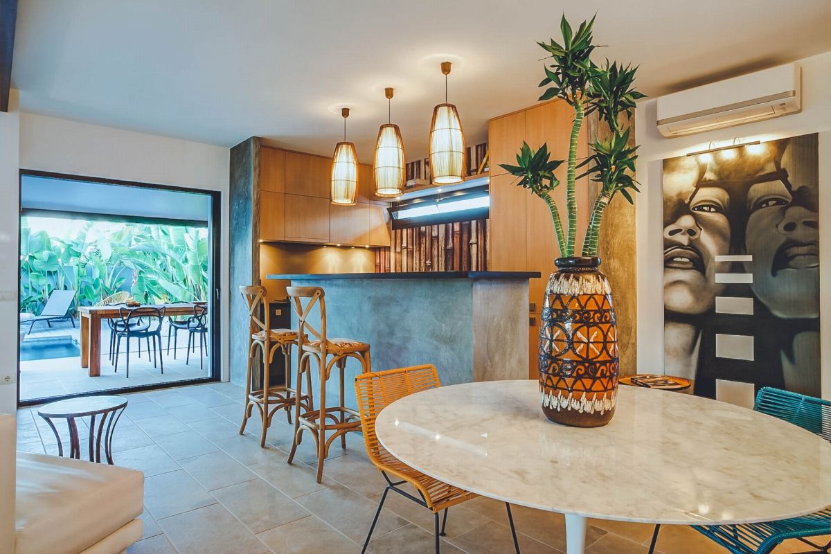 This stunning one level property is set among tasteful, Japanese inspired gardens with lush plantations and numerous outdoor chill out spaces which have been complemented with bamboo and Balinese furnishings.