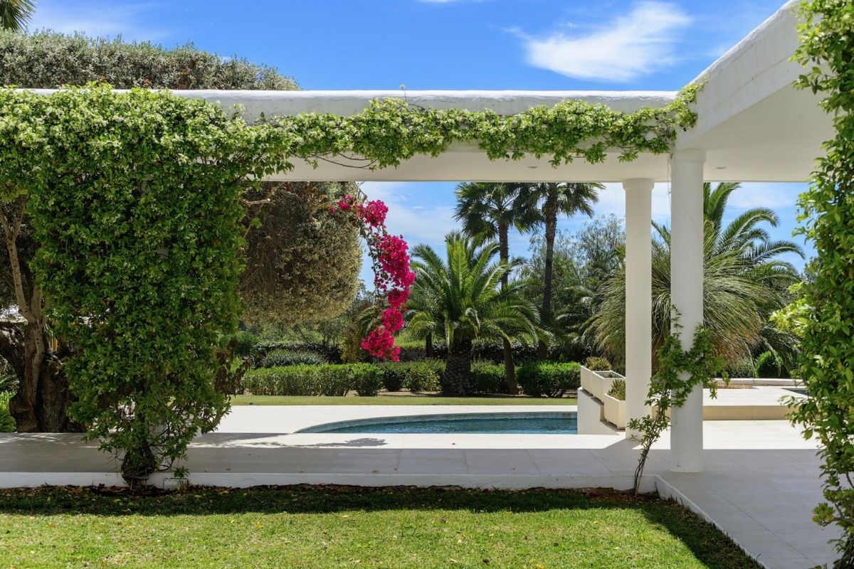The villa spans several acres of beautifully landscaped gardens, providing a sense of seclusion and tranquility.