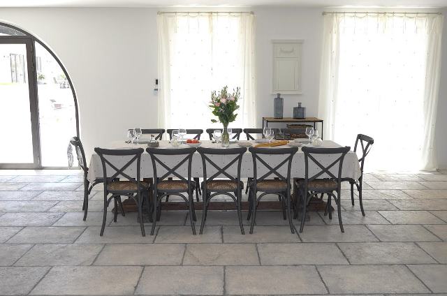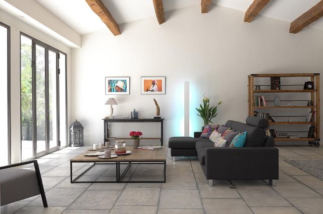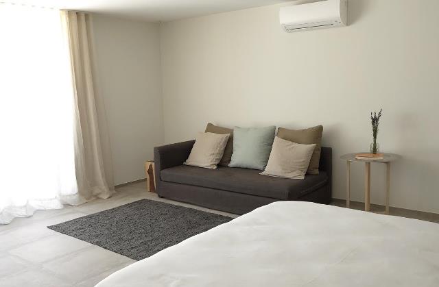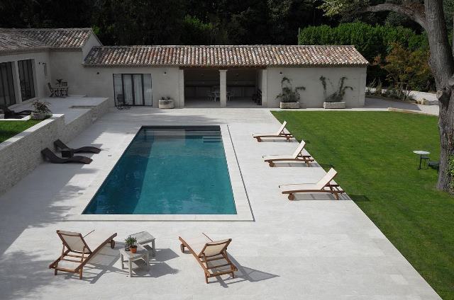 Villa Laetitia is a really luminous house. Inside, the decoration is a mix of trend pieces of furniture with refined lines but also some vintage pieces. The bay windows overlooked the garden, the limes and the swimming pool.