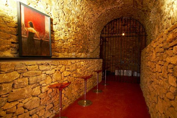 Projector); A bar in a beautiful volted room with a wine cellar; A