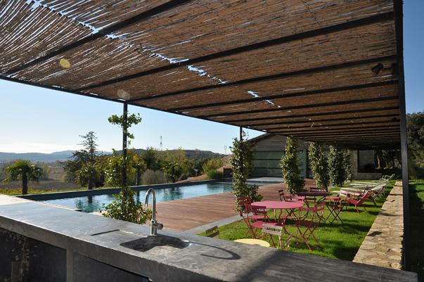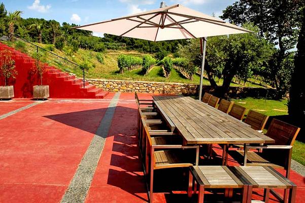 BBQ; lit clay tennis court; vast sports area; heliport; shaded