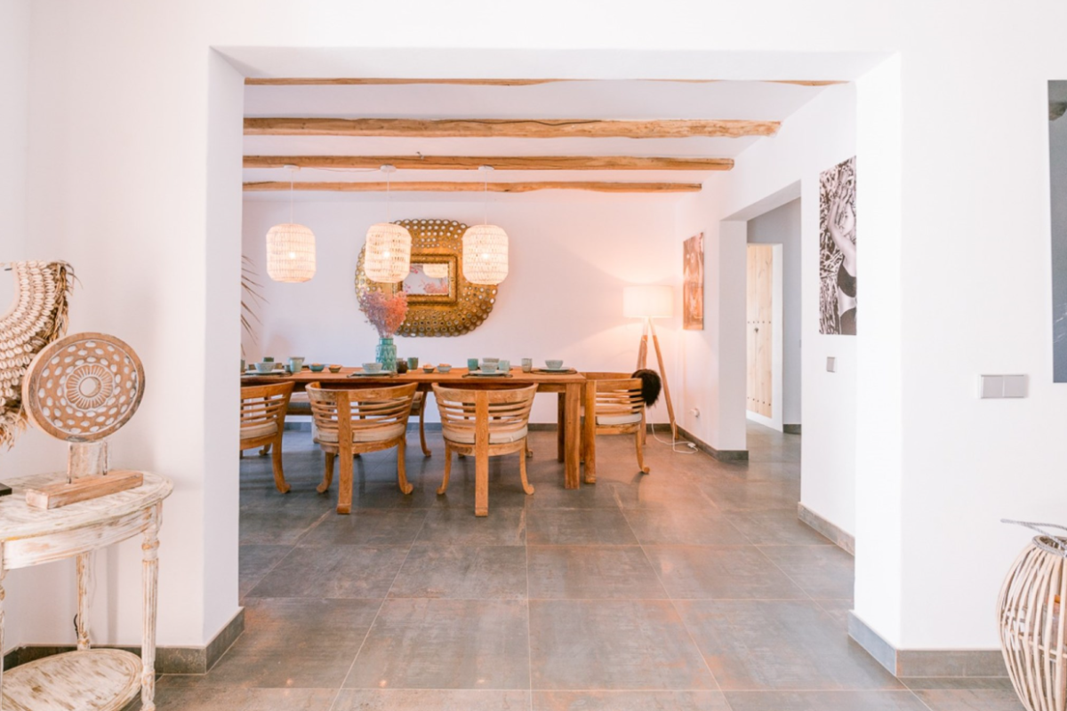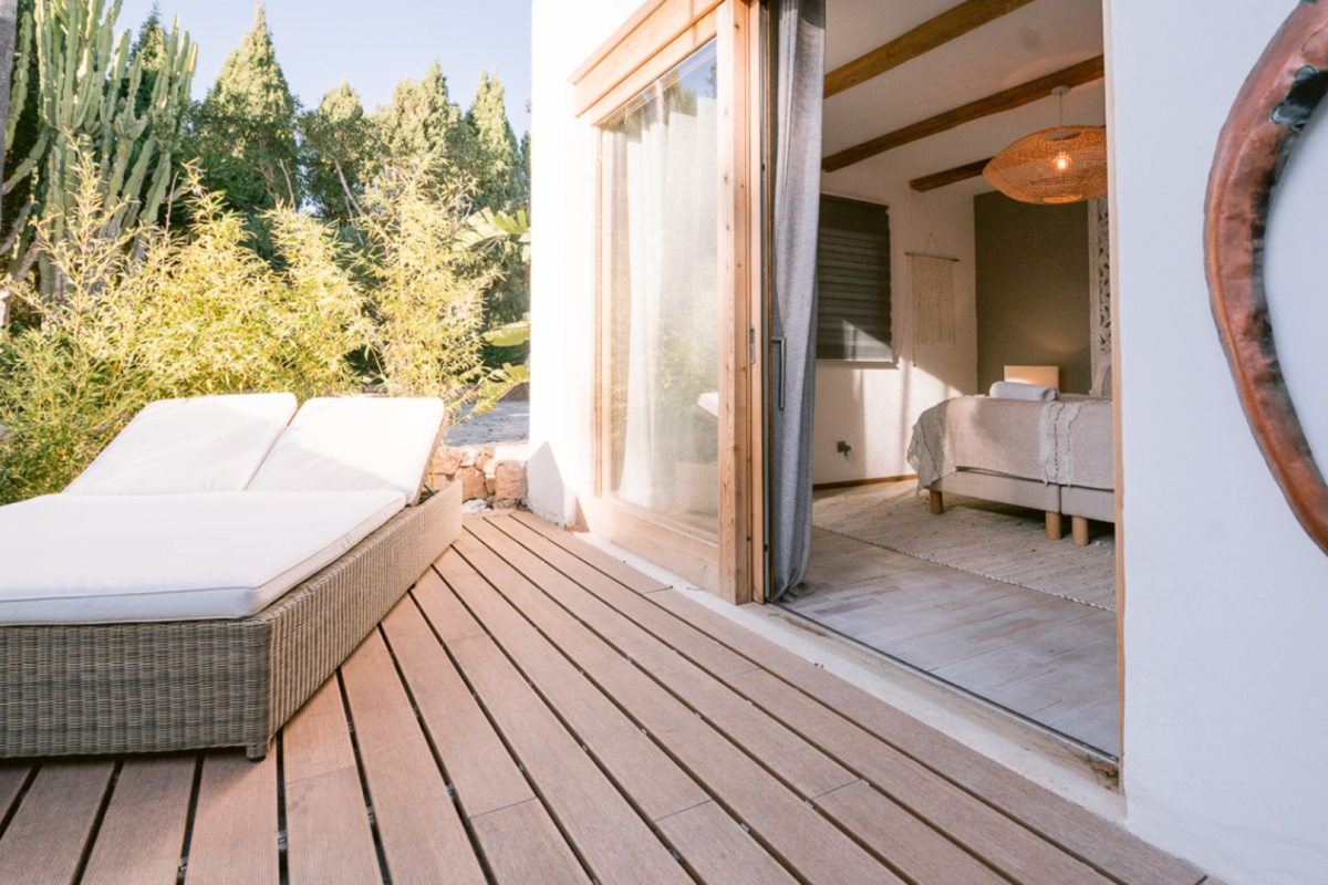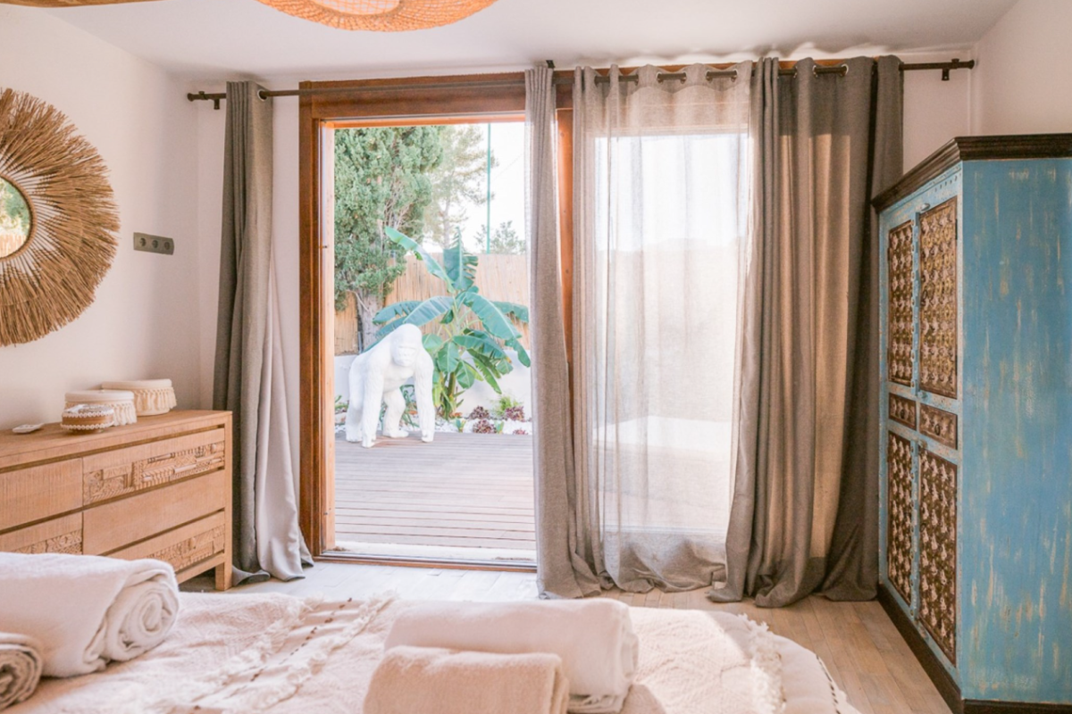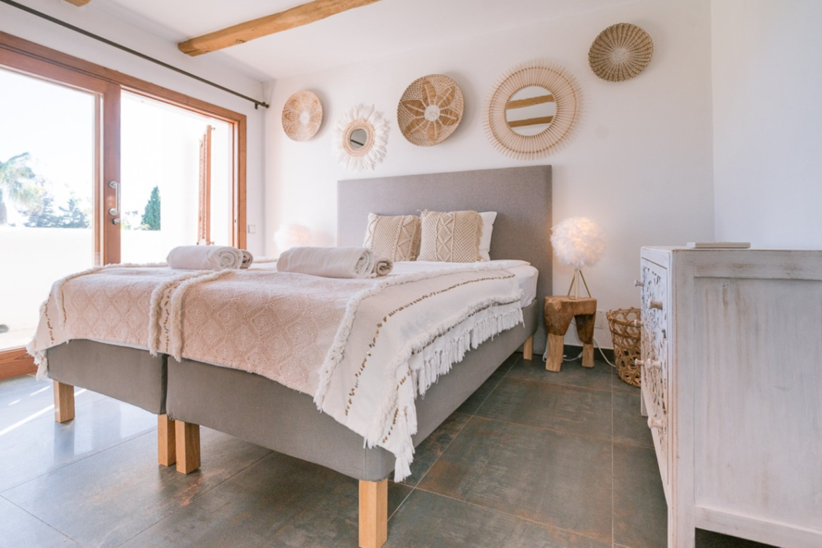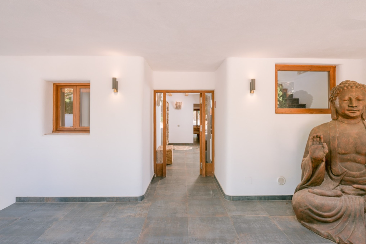 Les chambres situées sur le toit offrent une vue imprenable sur la mer et Formentera. Idéalement située sur la route entre Ibiza (4 km) et la charmante ville de San Jose, la villa se trouve à proximité de plusieurs plages renommées et de la célèbre vie nocturne d'Ibiza, tout en offrant une sérénité et une intimité extraordinaires sur son domaine privé luxuriant.