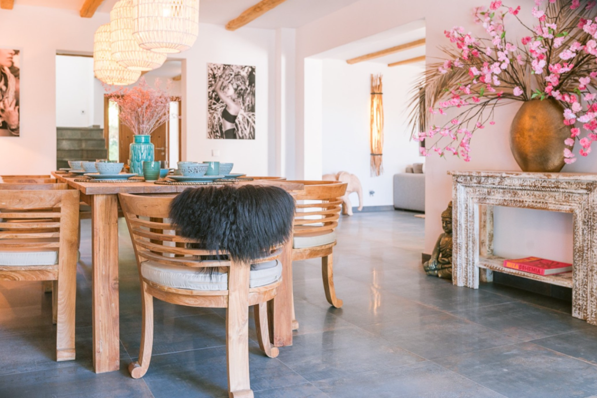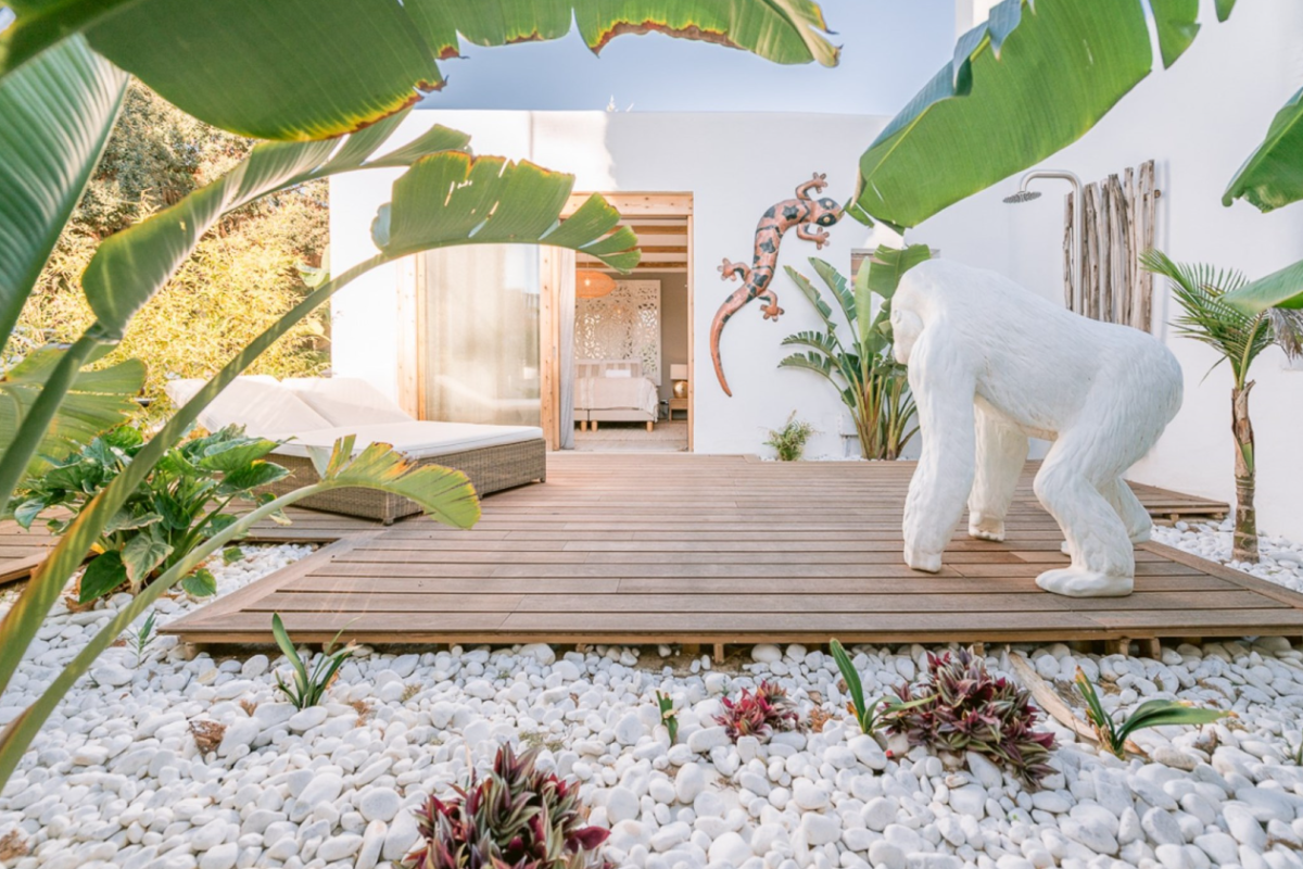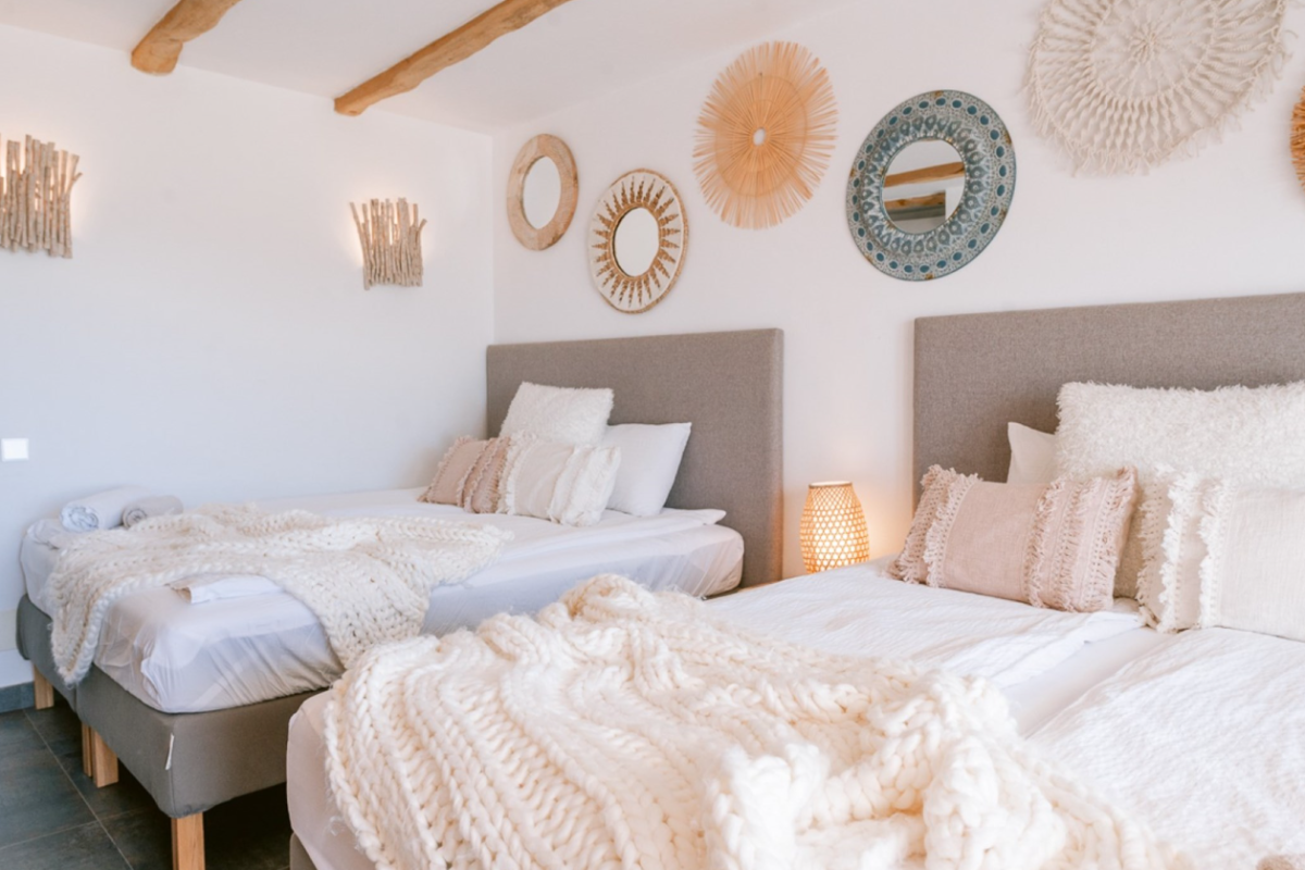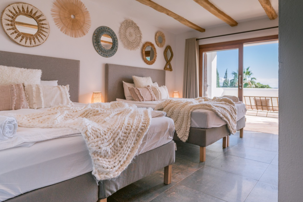 Les chambres situées sur le toit offrent une vue imprenable sur la mer et Formentera. Idéalement située sur la route entre Ibiza (4 km) et la charmante ville de San Jose, la villa se trouve à proximité de plusieurs plages renommées et de la célèbre vie nocturne d'Ibiza, tout en offrant une sérénité et une intimité extraordinaires sur son domaine privé luxuriant.