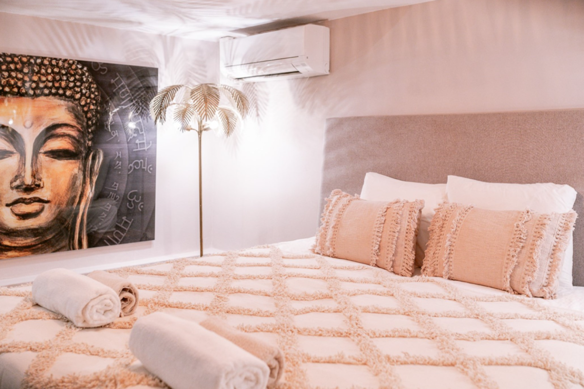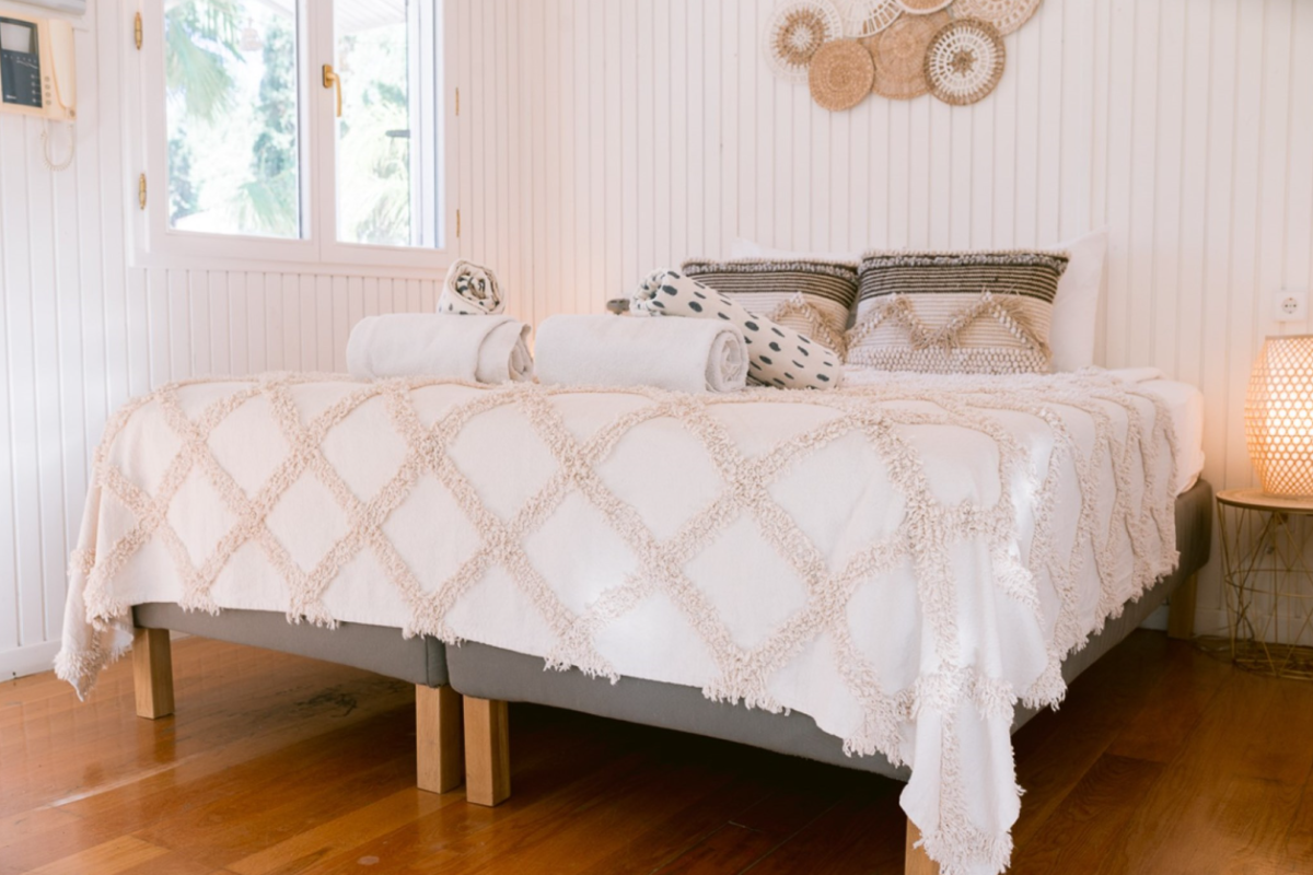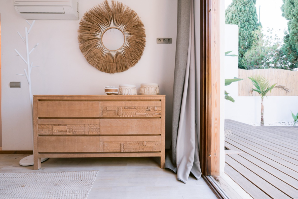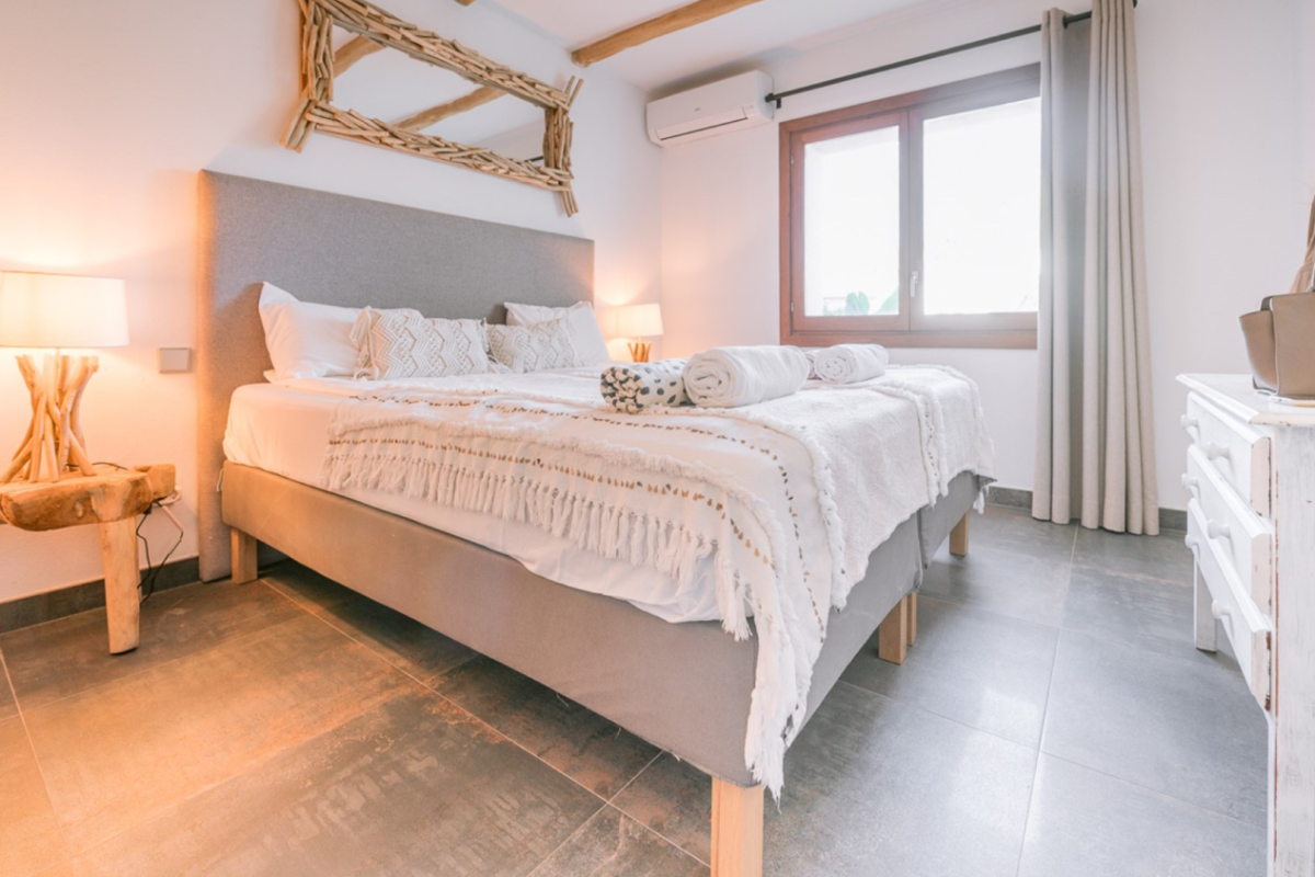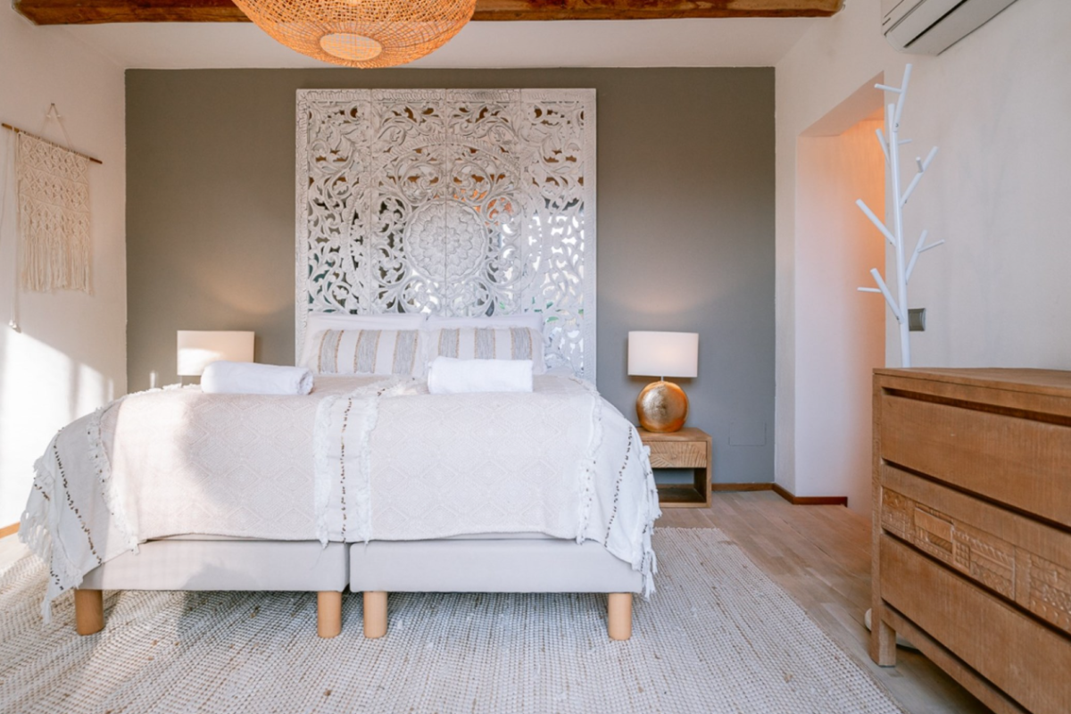 Les chambres situées sur le toit offrent une vue imprenable sur la mer et Formentera. Idéalement située sur la route entre Ibiza (4 km) et la charmante ville de San Jose, la villa se trouve à proximité de plusieurs plages renommées et de la célèbre vie nocturne d'Ibiza, tout en offrant une sérénité et une intimité extraordinaires sur son domaine privé luxuriant.