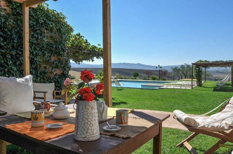 Located in the heart of Tuscany, near the internationally famous town of Siena, the villa is surrounded by a landscape of hills and plains, fields and little traditional villages. This is also the ideal place to discover the local art and products: Montalcino, renowned for its wine is at 30 minutes from the villa, the artistic jewels of Pienza are at only 15 minutes and many other places are in easy reach.